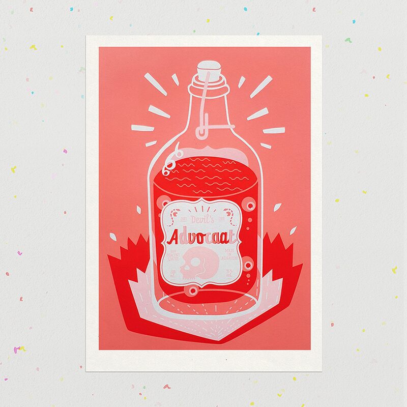 Playful illustration of the Devil’s favourite tipple, inspired by pop culture with a packaging theme.