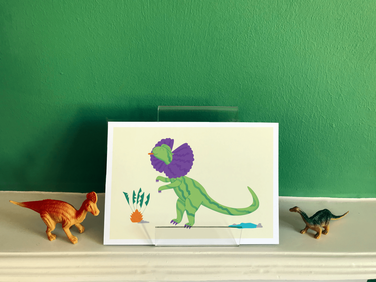 a cute illustration of a Dilophosaurus Dinosaur A5 / A4 art print