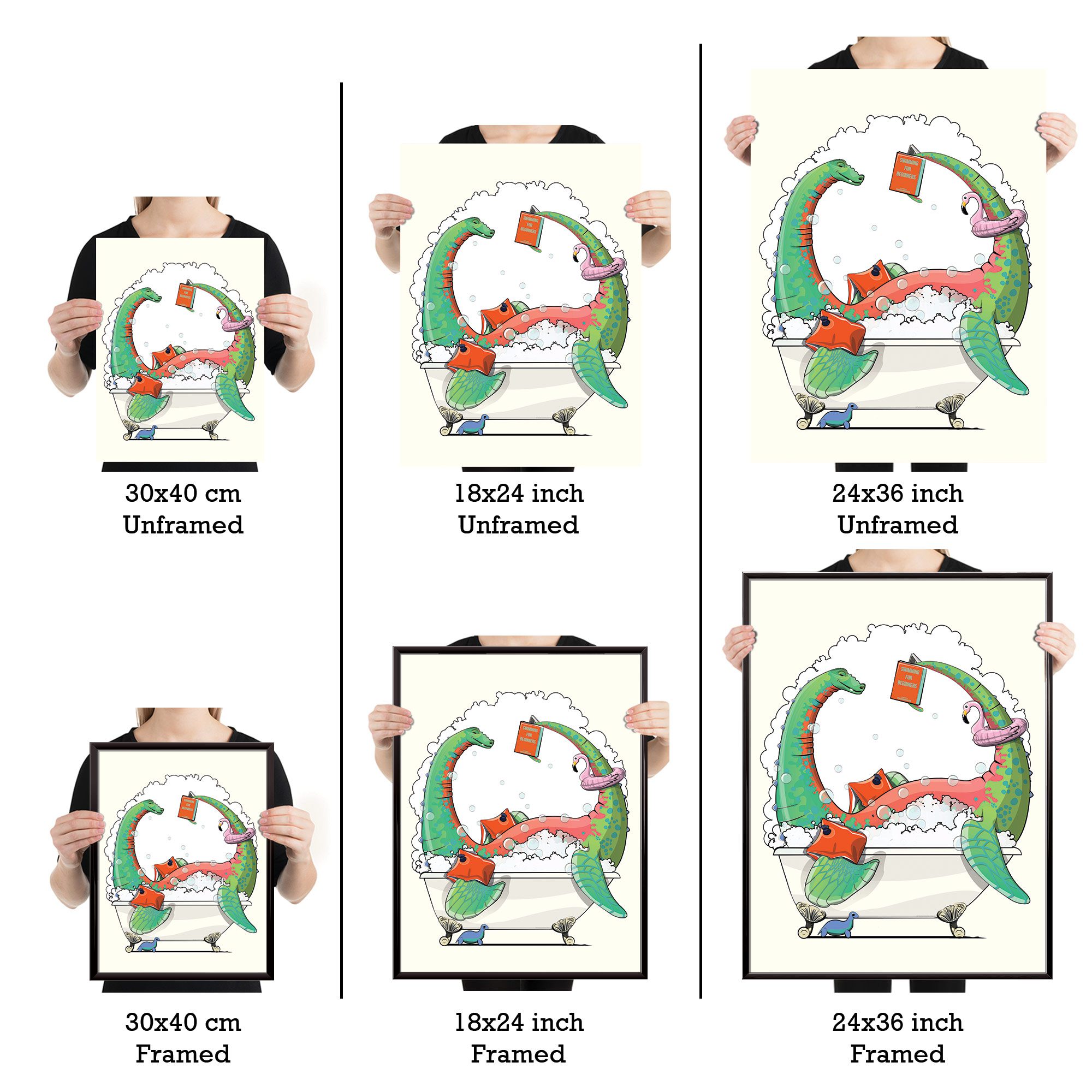 Add a touch of prehistoric humor to your bathroom with these delightful dinosaur prints. Whether for kids or dino-loving adults, the Dinosaur Plesiosaur Using the Bath poster promises to make bath time more exciting. Brighten your walls and encourage smiles today!