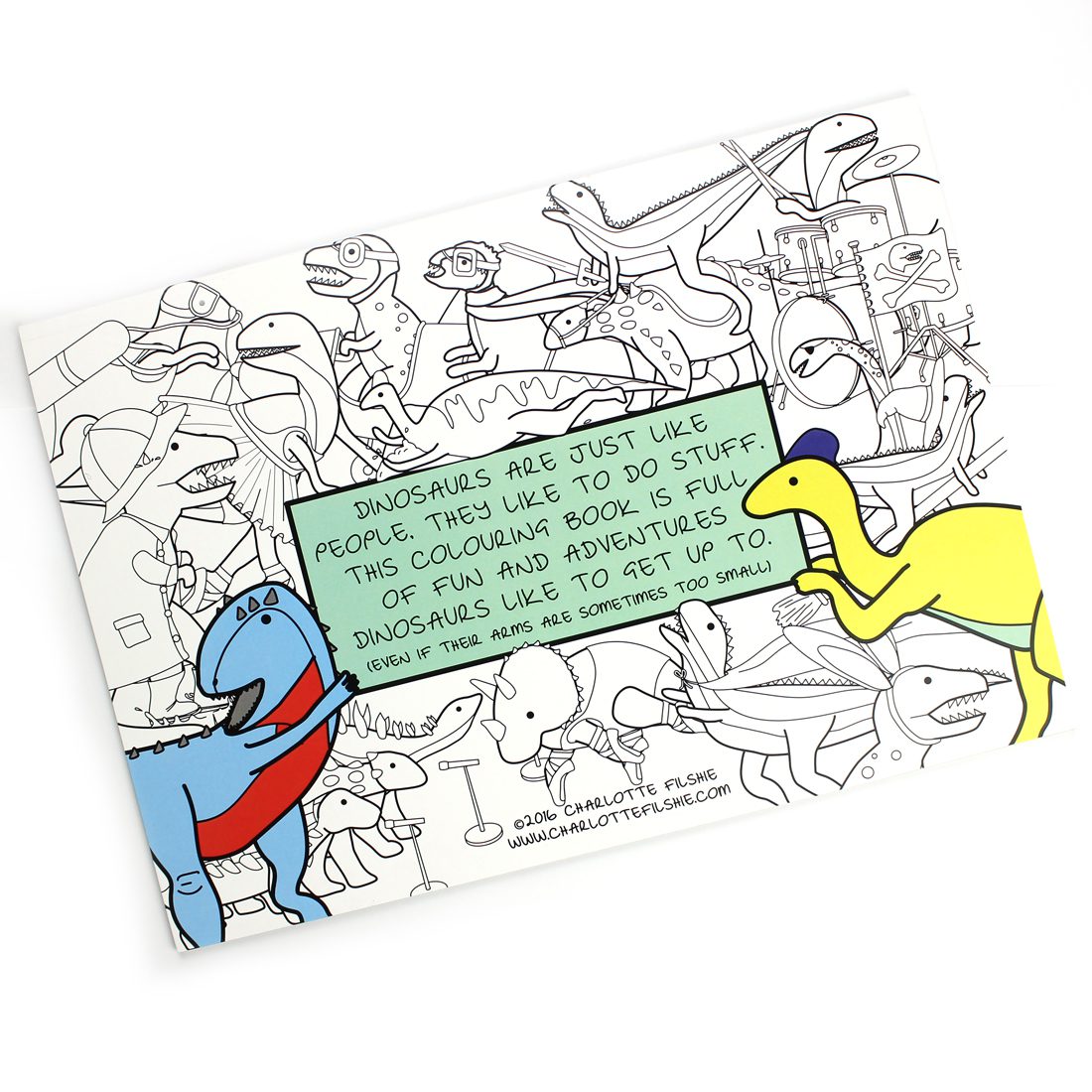Dinosaurs doing stuff is a super fun colouring book filled with illustrations of dinosaur doing all kinds of stuff!