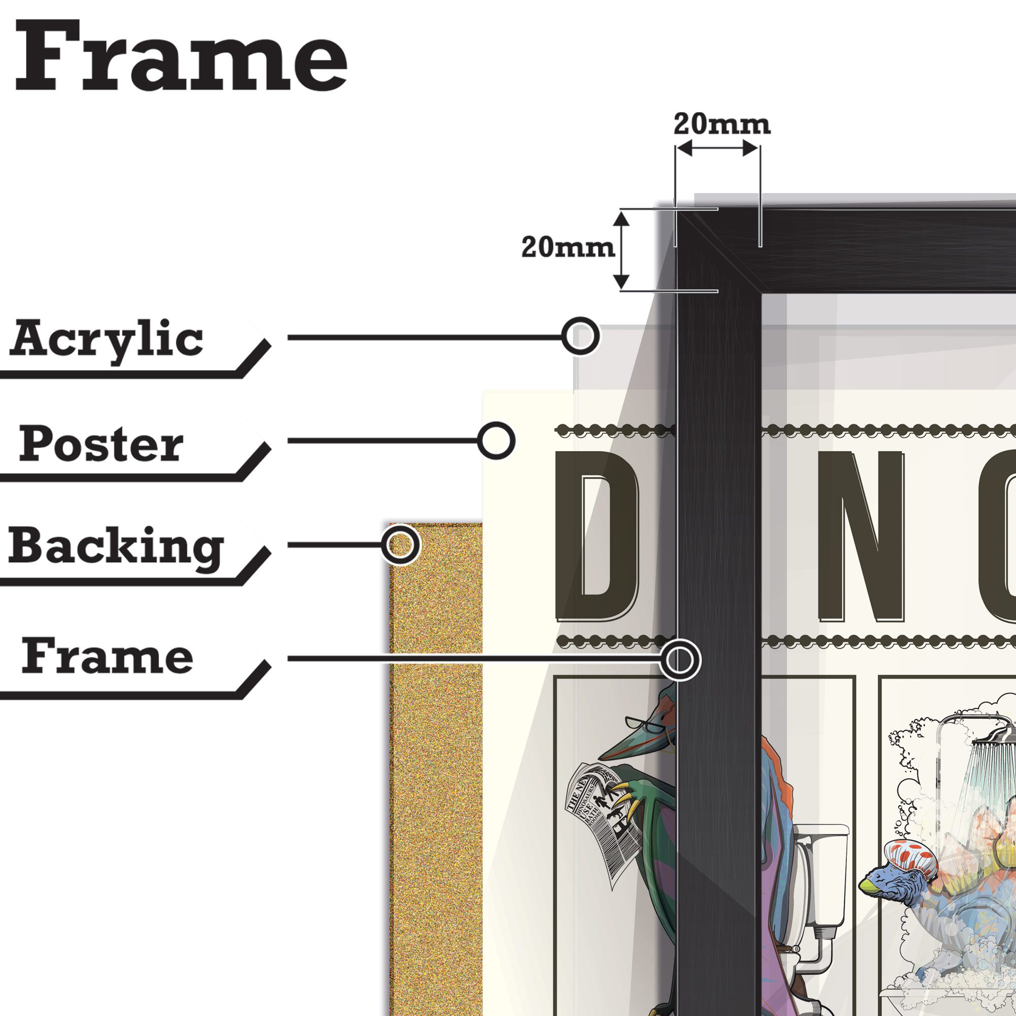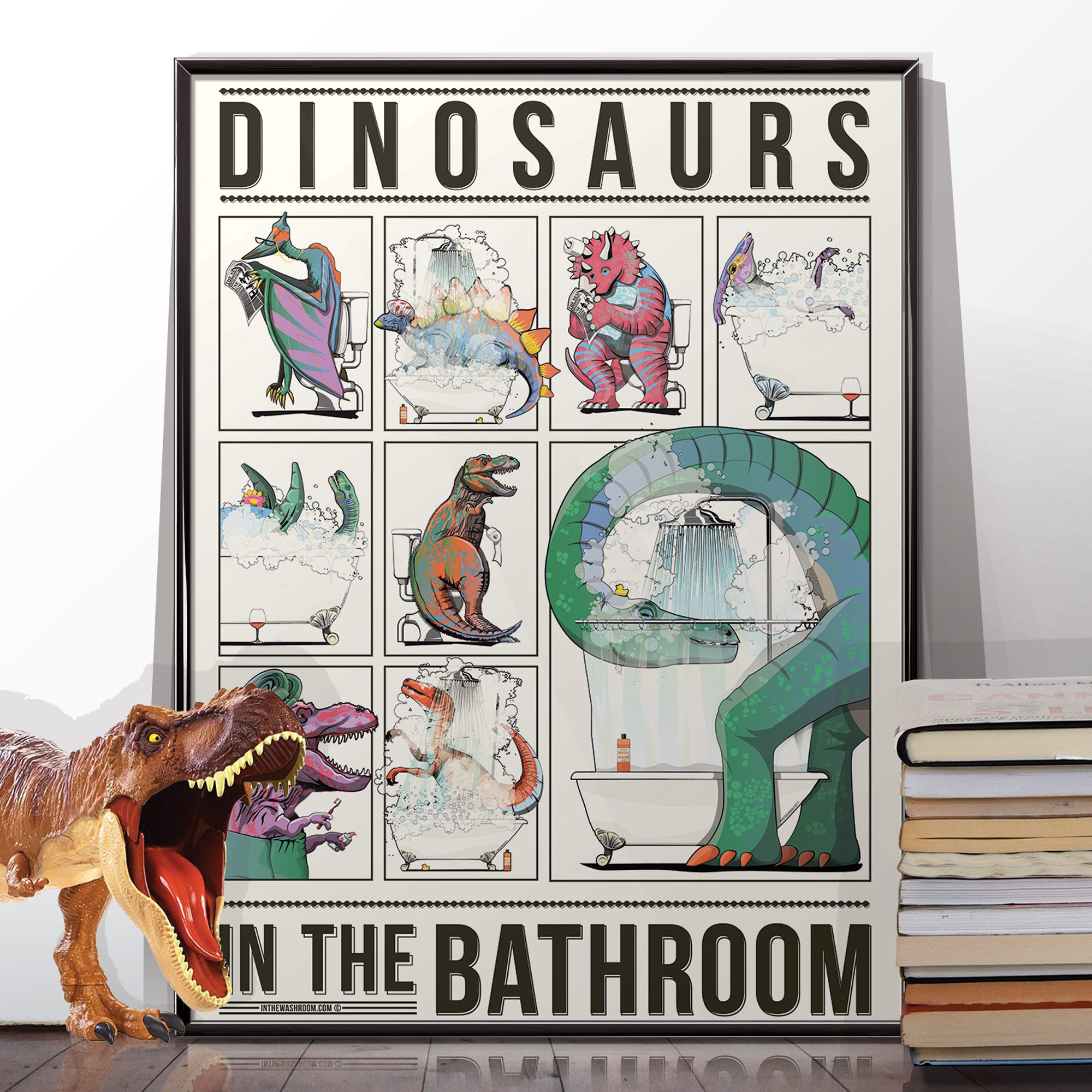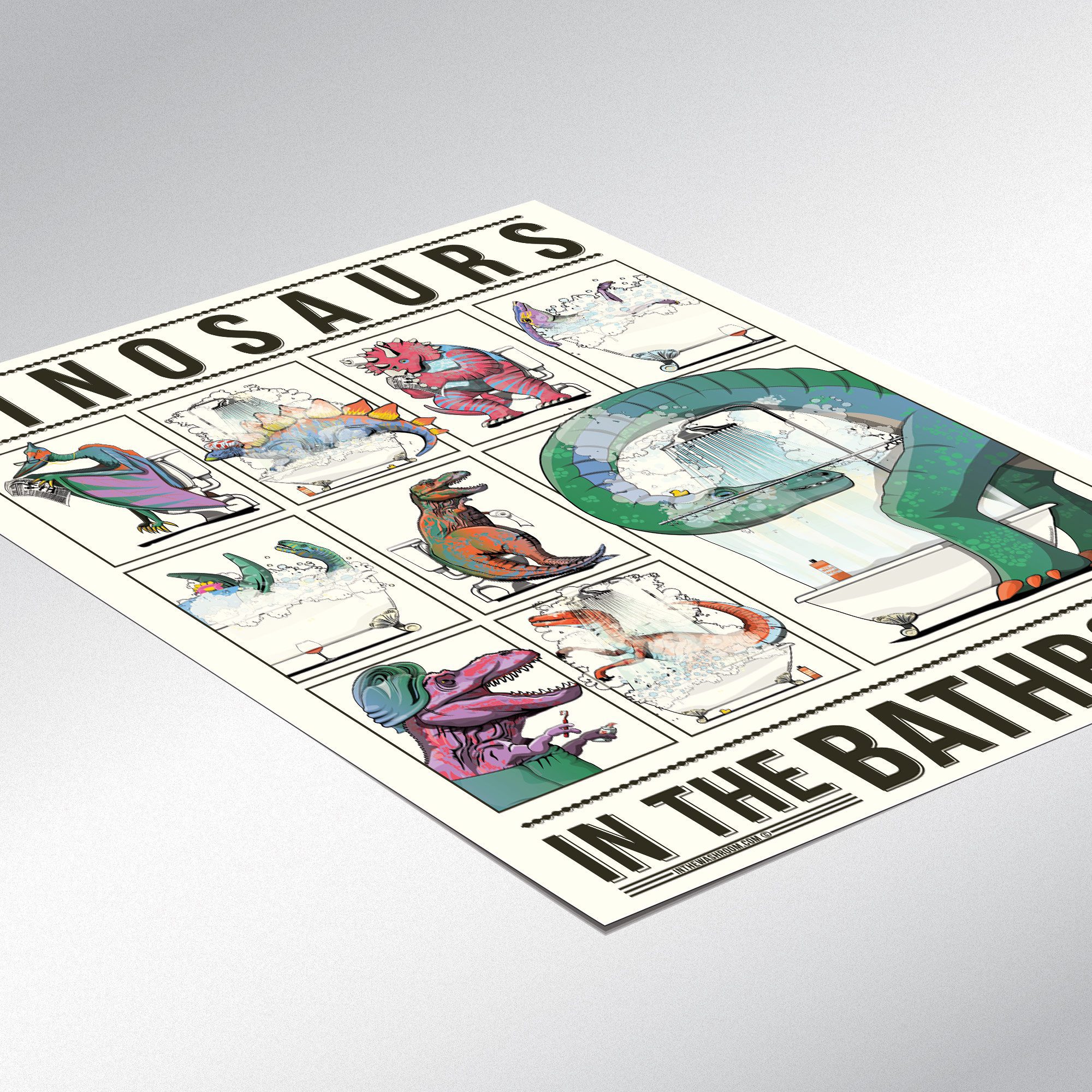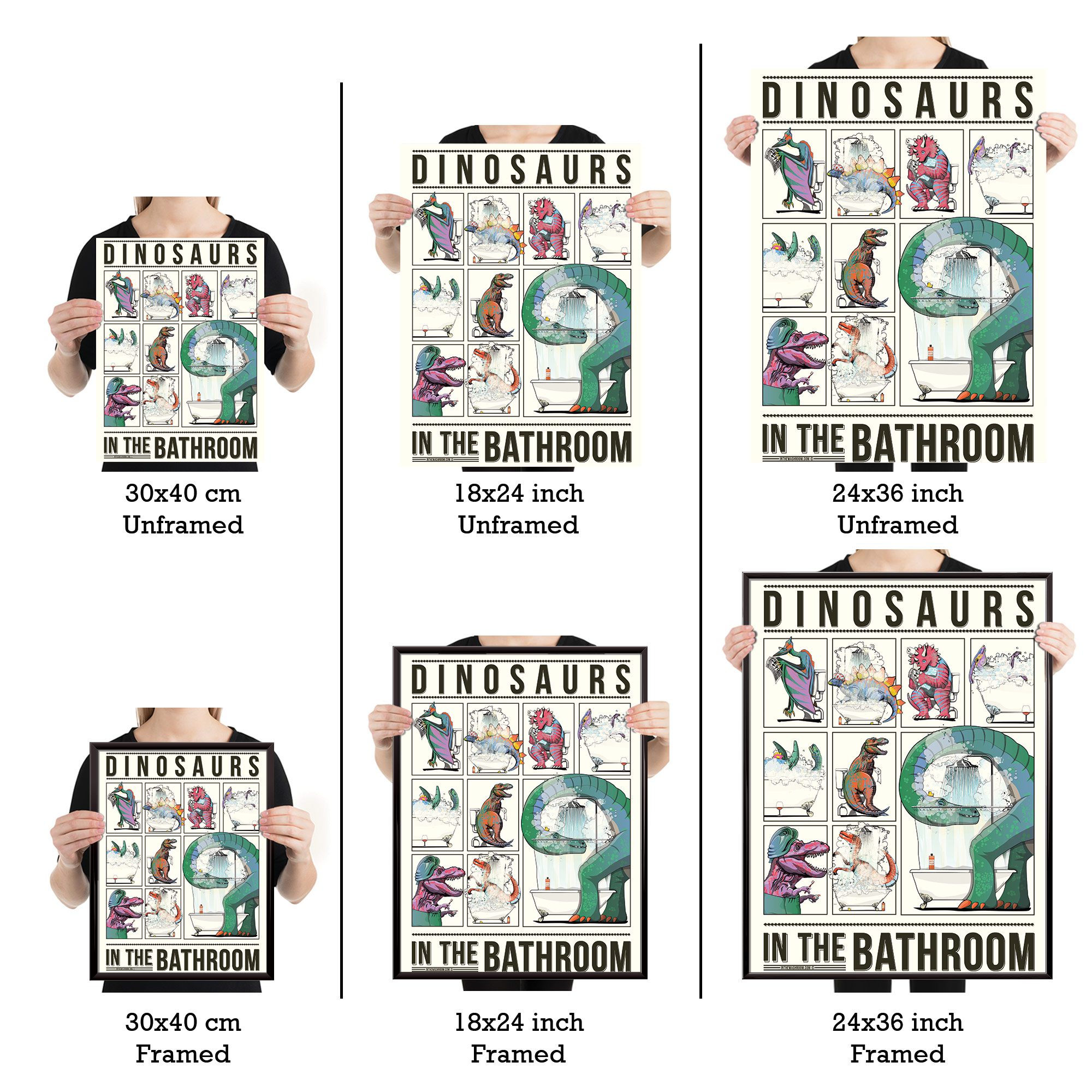 The Dinosaurs in the Bathroom poster comes in three convenient sizes: