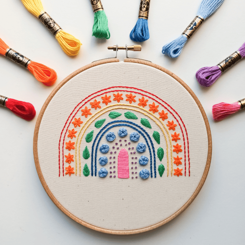 DIY embroidery kit for beginners – Rainbow stitch sampler