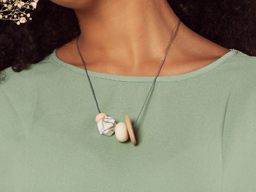 These modern geometric necklaces, handmade with silicone beads and waxed cotton, create the perfect statement piece and ideal gift. Bold and brightly coloured, these chunky bead necklaces make beautiful statement pieces while also being lightweight and comfortable to wear.