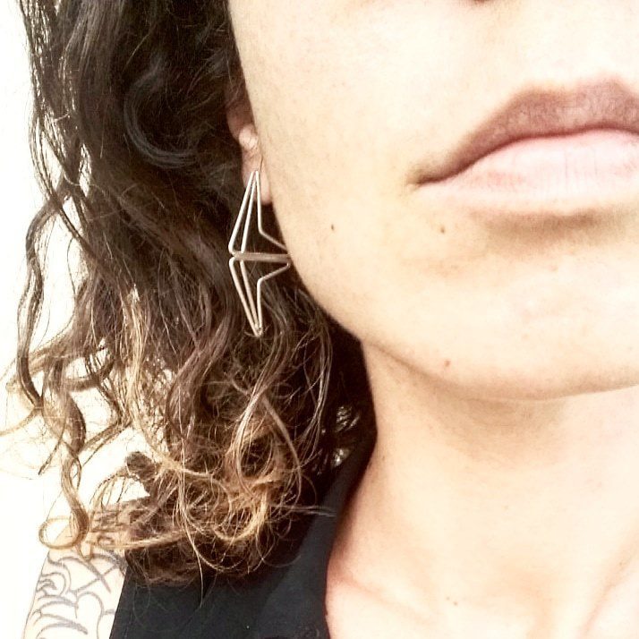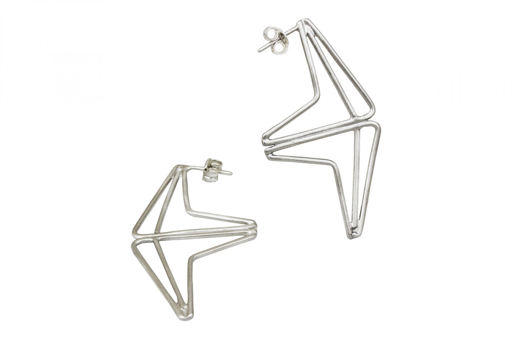 Double festival silver earrings – Unique statement triangle side way’s earrings.