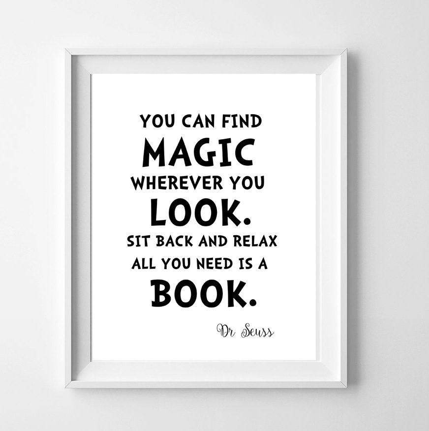 - Quote: Dr. Seuss – “You can find magic wherever you look, sit back and relax, all you need is a book.”