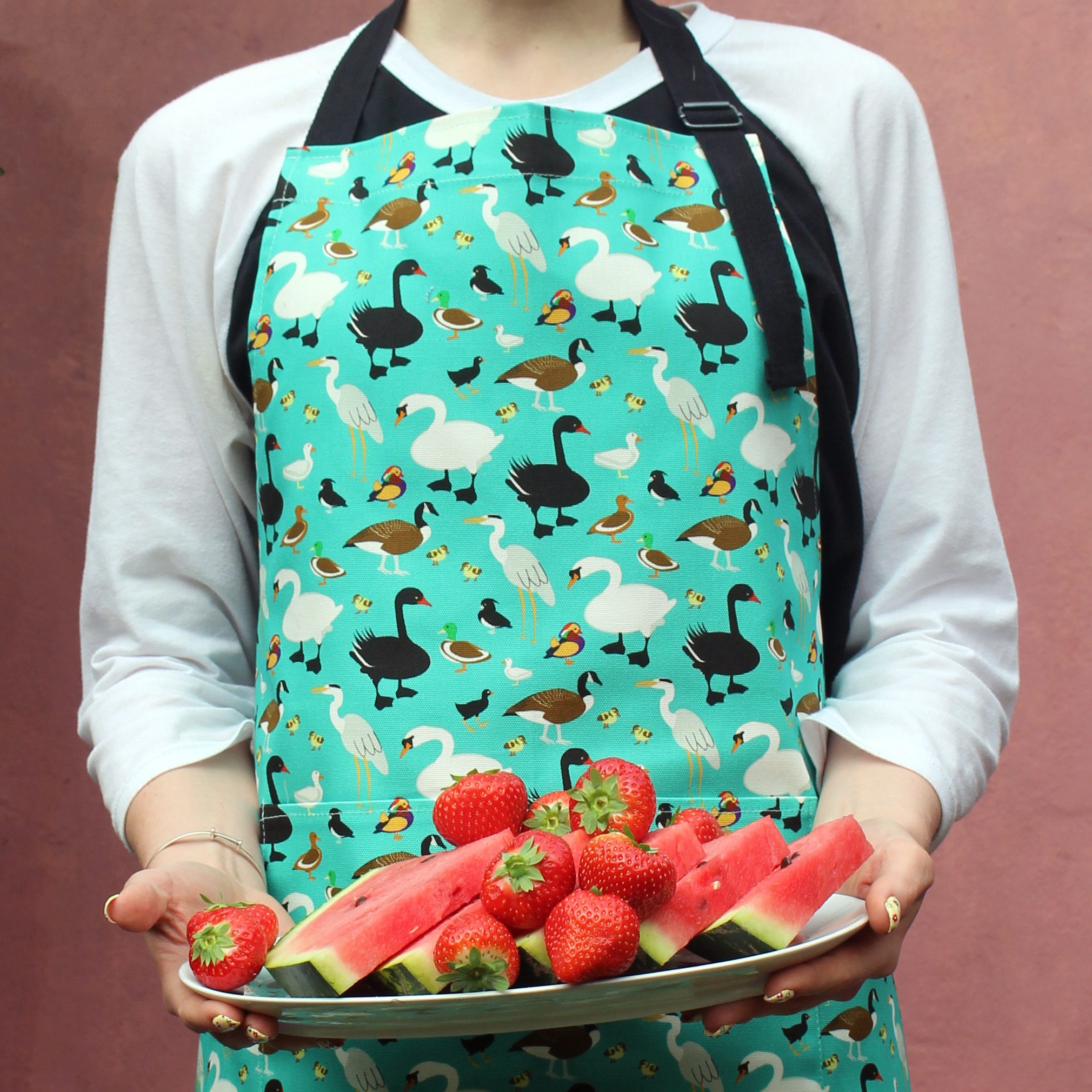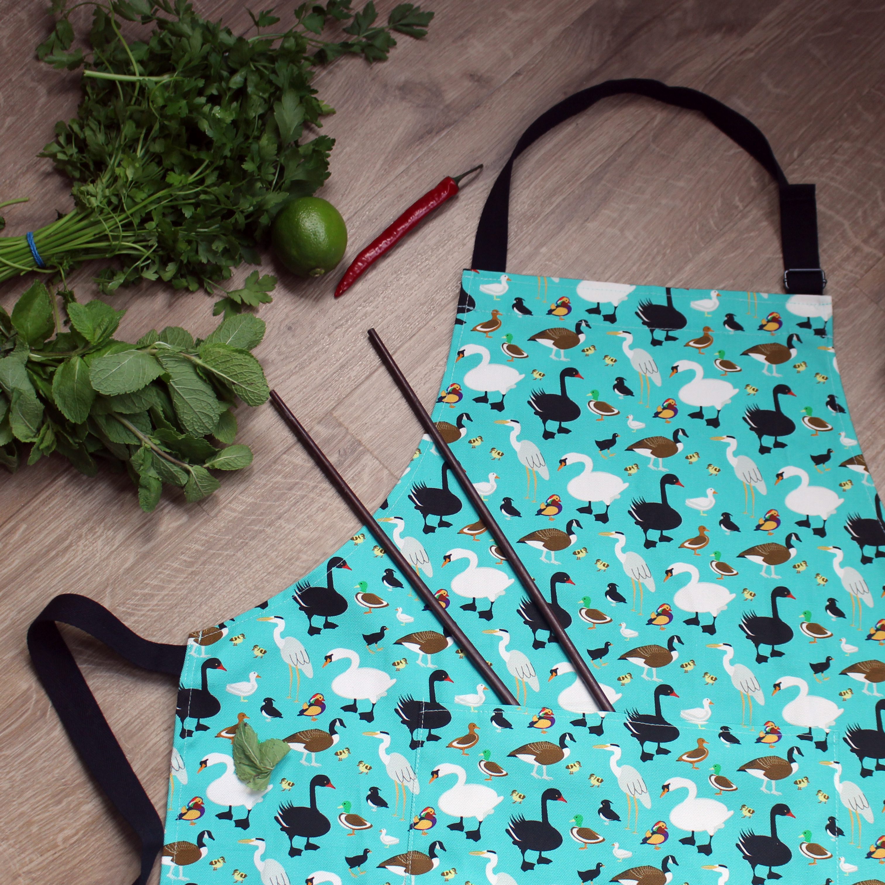 all your favourite characters from your local duckpond are featured in this exclusive UmmPixies duck apron