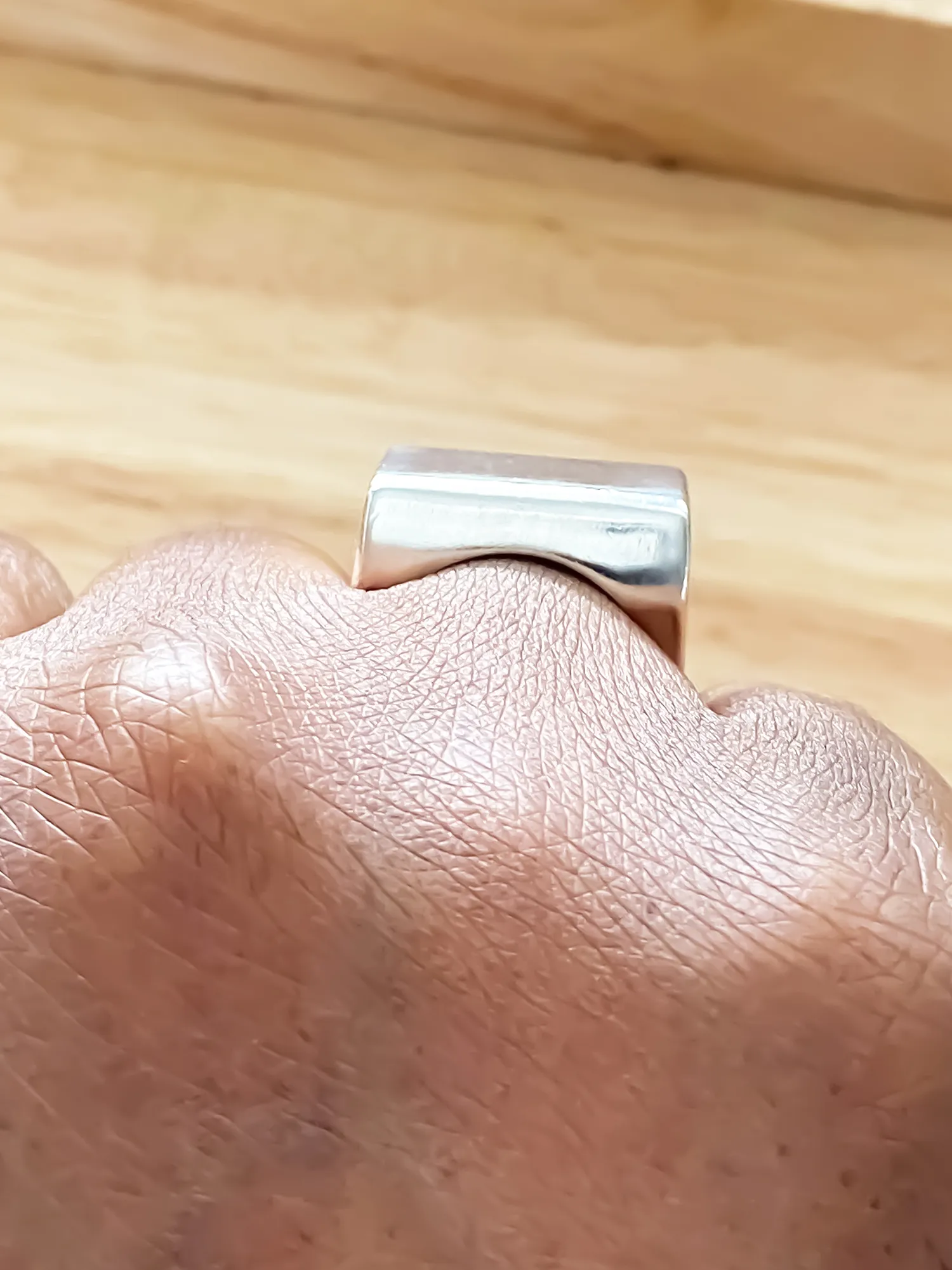 Make a bold statement with the Endless Signet Ring, a geometric block ring designed for those who appreciate clean lines, minimalist structure, and contemporary edge. With its distinctive square face and architectural silhouette, this piece redefines traditional signet ring design. Its strong geometry and sculptural presence make it the ideal accessory for those seeking refined, modern style with an artistic twist.