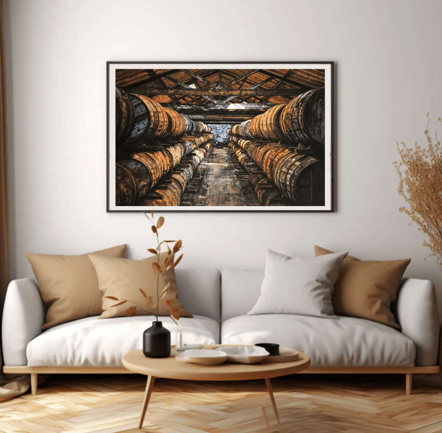 This Fettercairn Whisky Distillery Giclee print will become the focal point of any room. Its striking visual appeal makes it a great conversation starter, while its subtle tones allow it to blend seamlessly into various interior styles, from modern to rustic. Whether you’re a whisky enthusiast or an art lover, this print is a must-have addition to your collection.