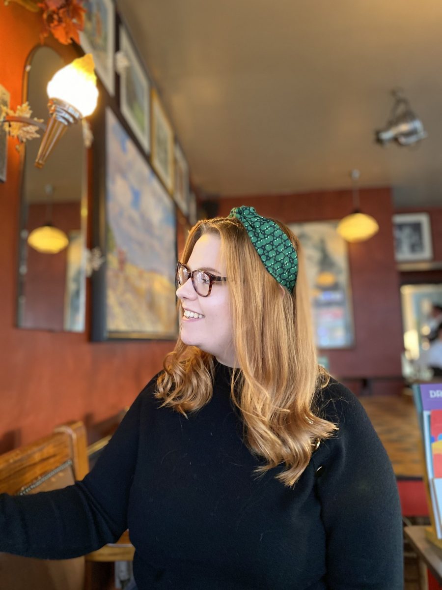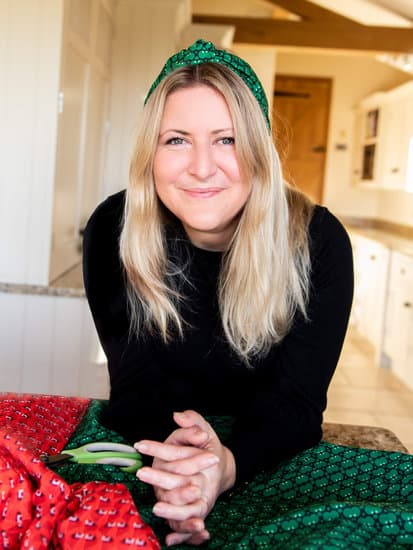 Light cotton knotted headband with unique Kate Whyley green circles design – in ‘Forest’