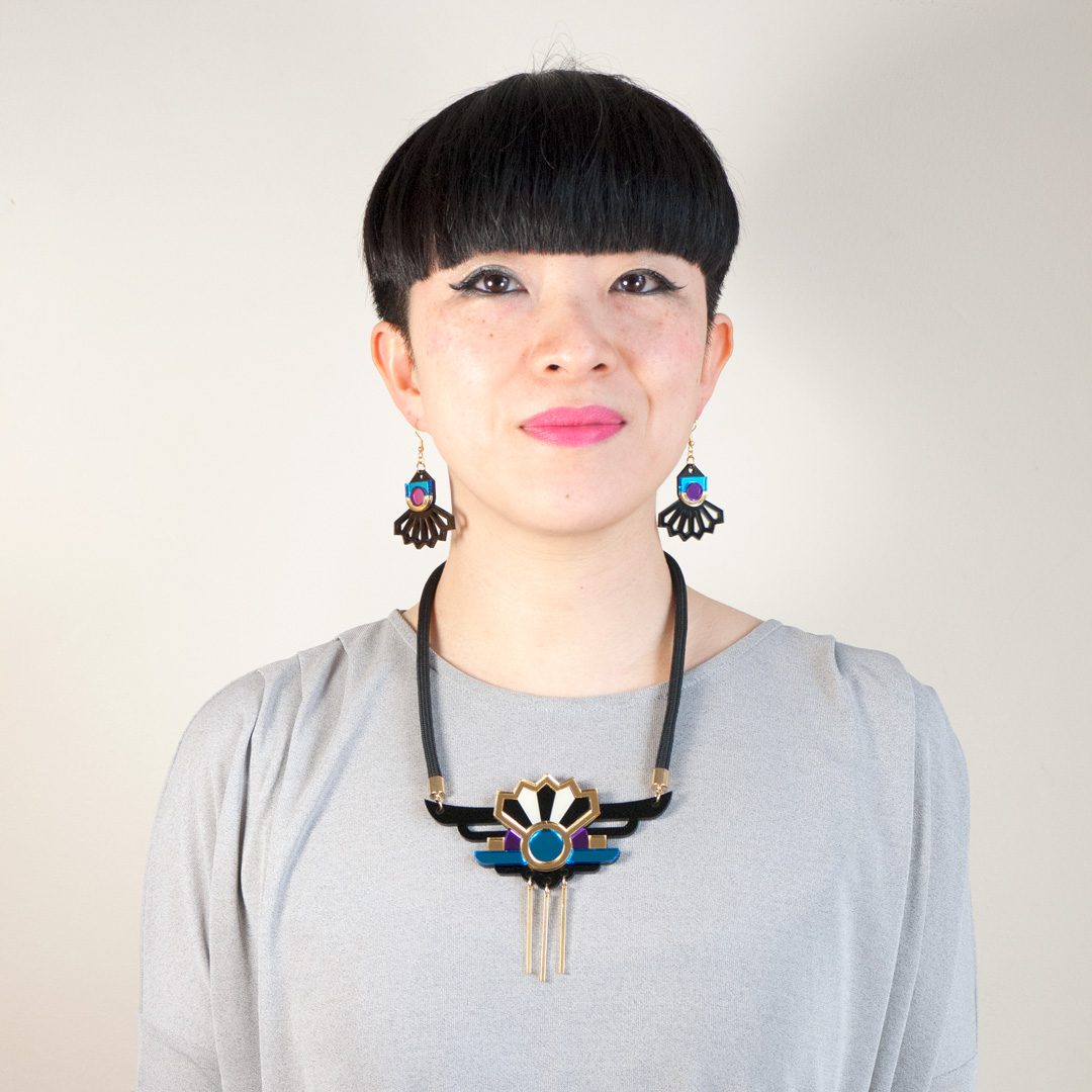 Geometric Perspex Statement Necklace hand made in London, UK.