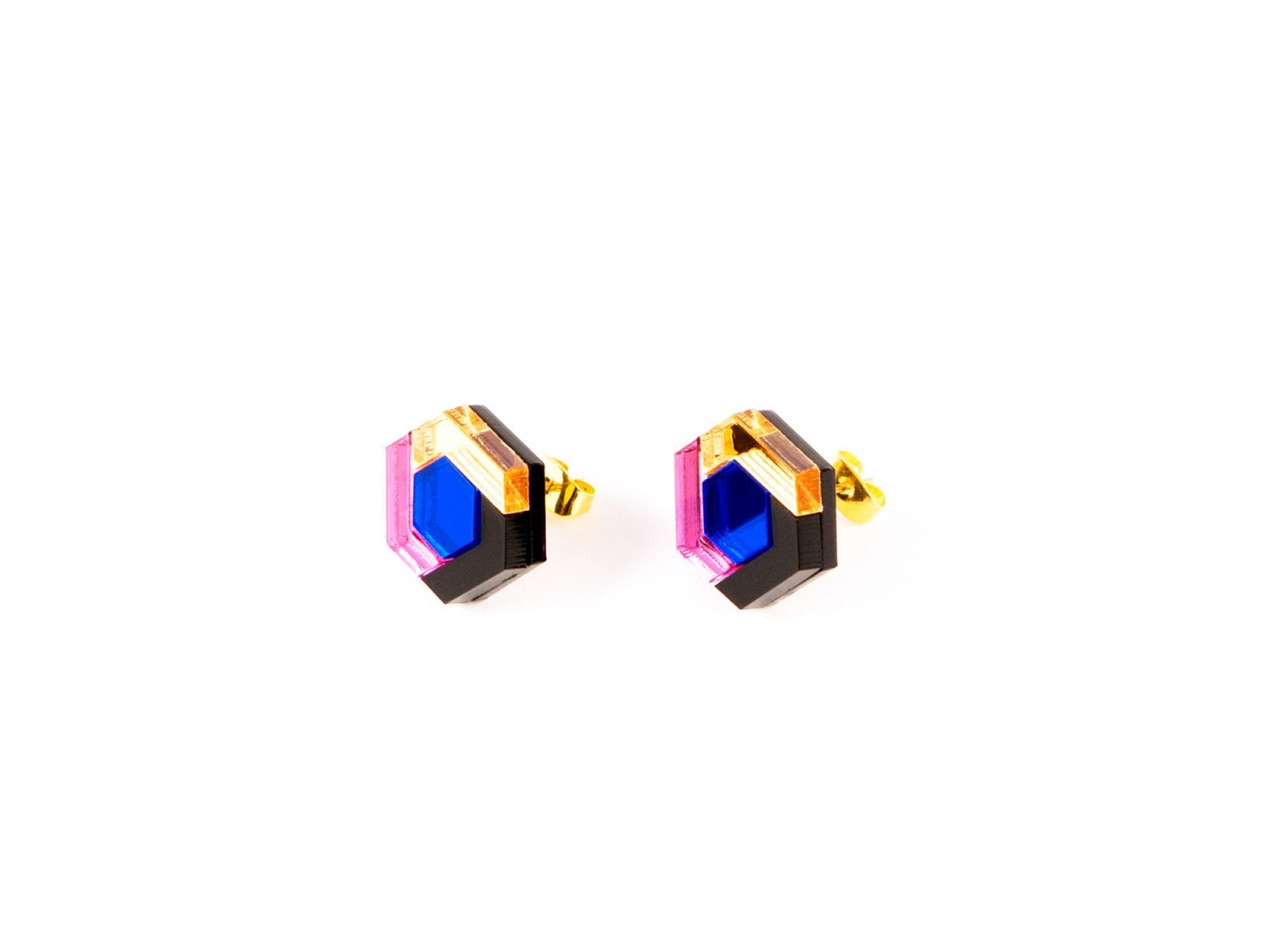 Geometric Perspex Statement Mini Earrings hand made in London, UK.