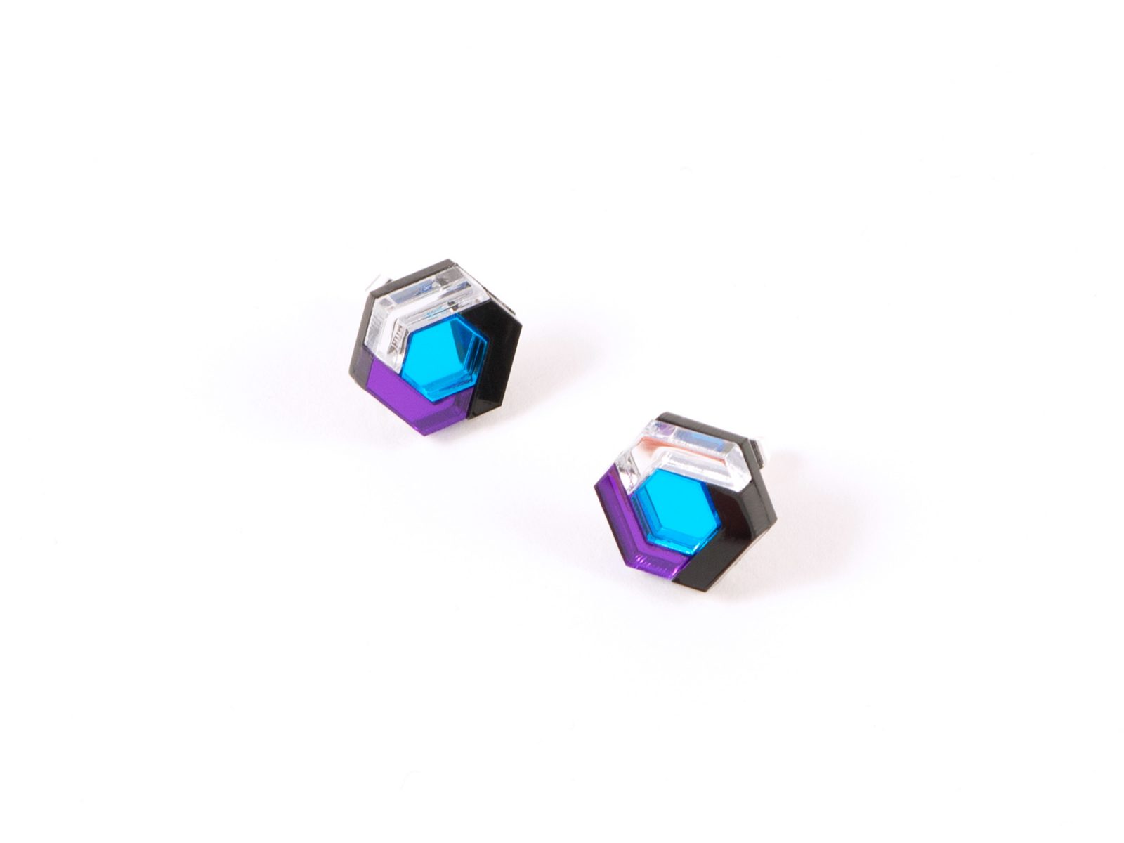 Geometric Perspex Statement Mini Earrings hand made in London, UK.