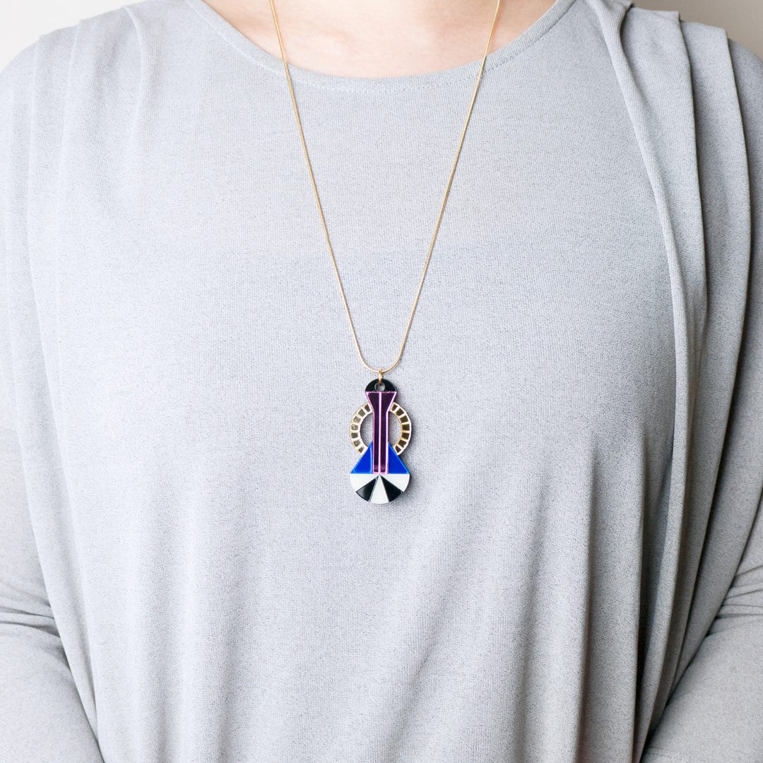Geometric Perspex Statement Necklace hand made in London, UK.