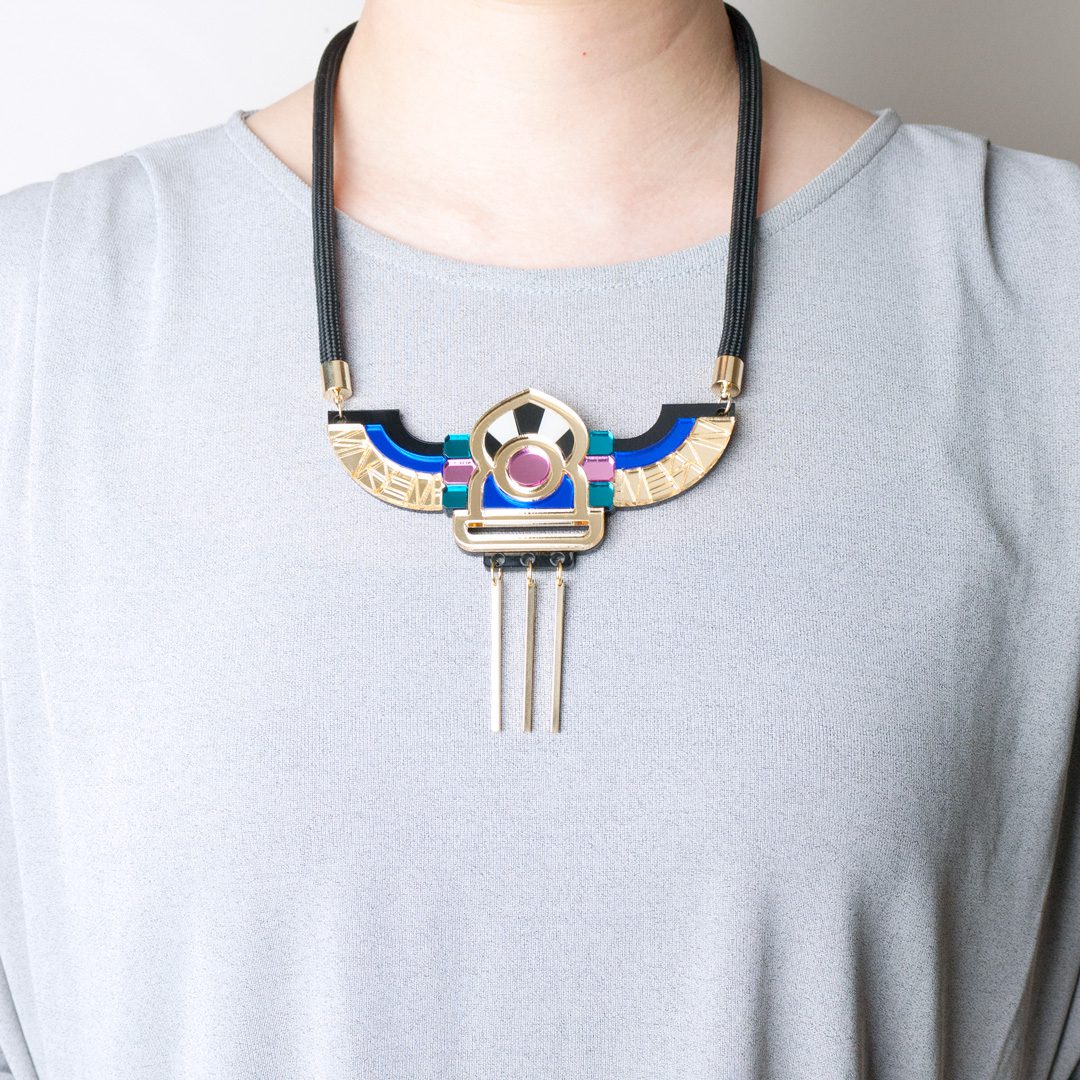Geometric Perspex Statement Necklace hand made in London, UK.