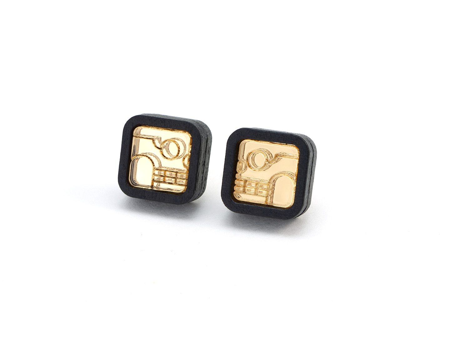 Comprised of laser cut and layered acrylic mirror in gold and painted wood (FSC Certified) in black (matte varnish finish).
