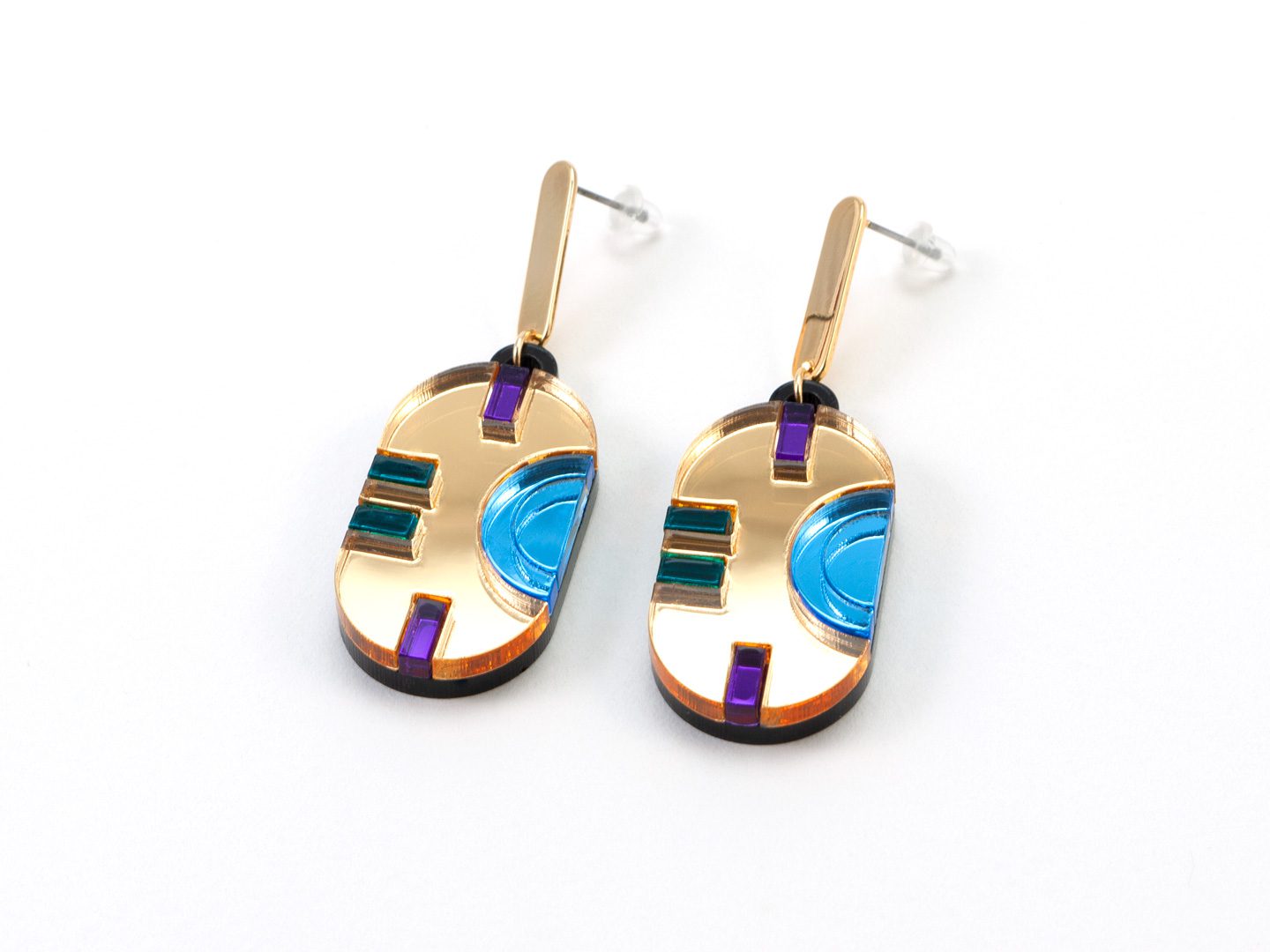 Geometric Perspex Statement Stud Earrings hand made in London, UK.