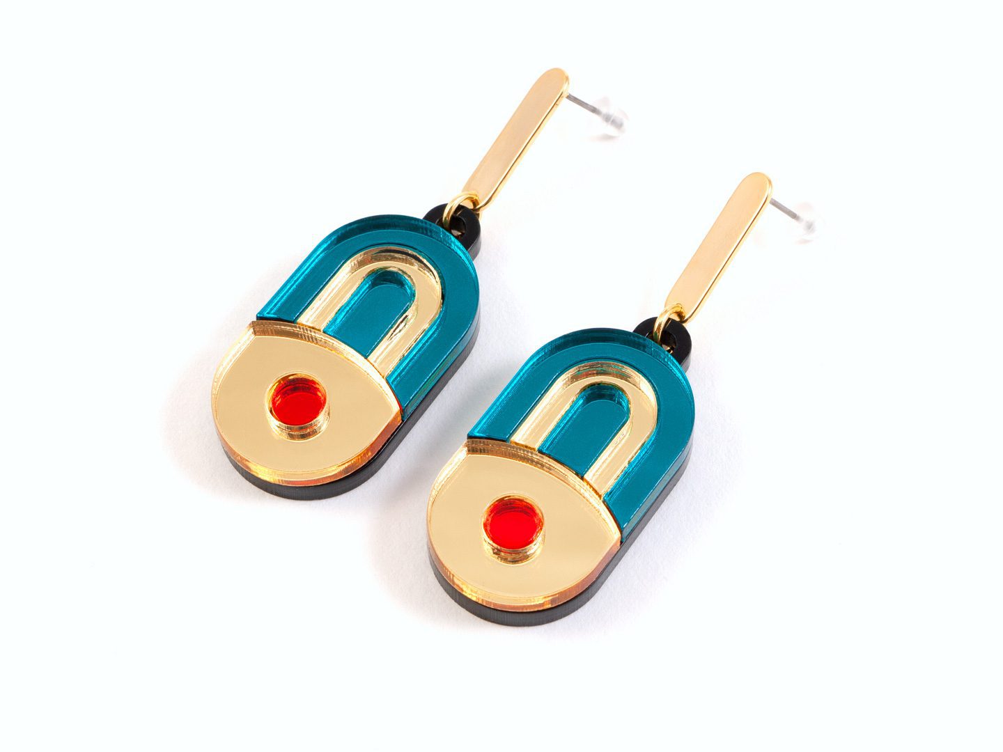 Geometric Perspex Statement Mini Earrings hand made in London, UK.