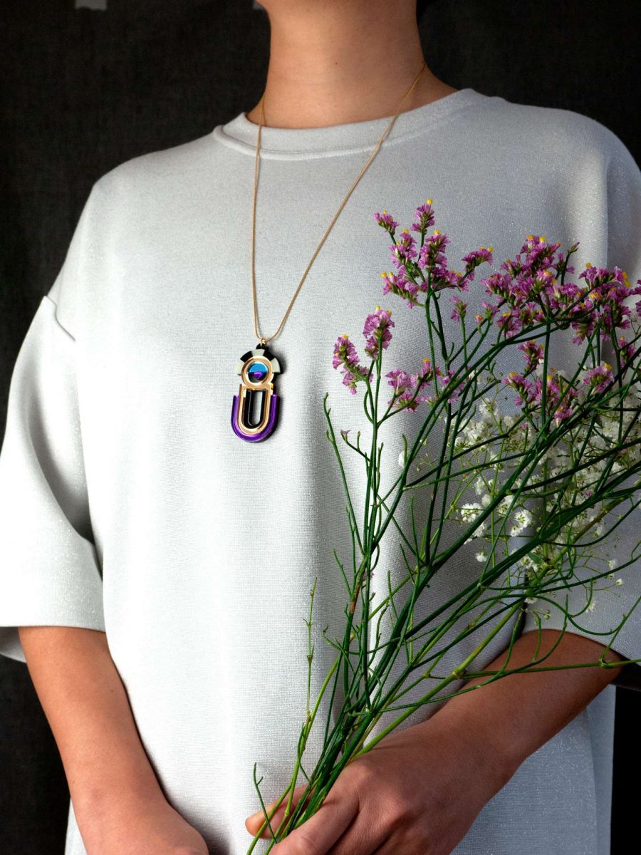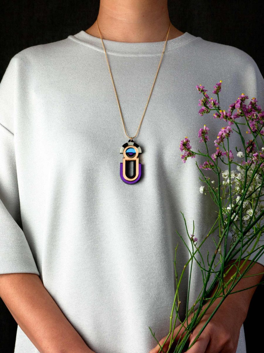 Geometric Perspex Statement Necklace Earrings hand made in London, UK.