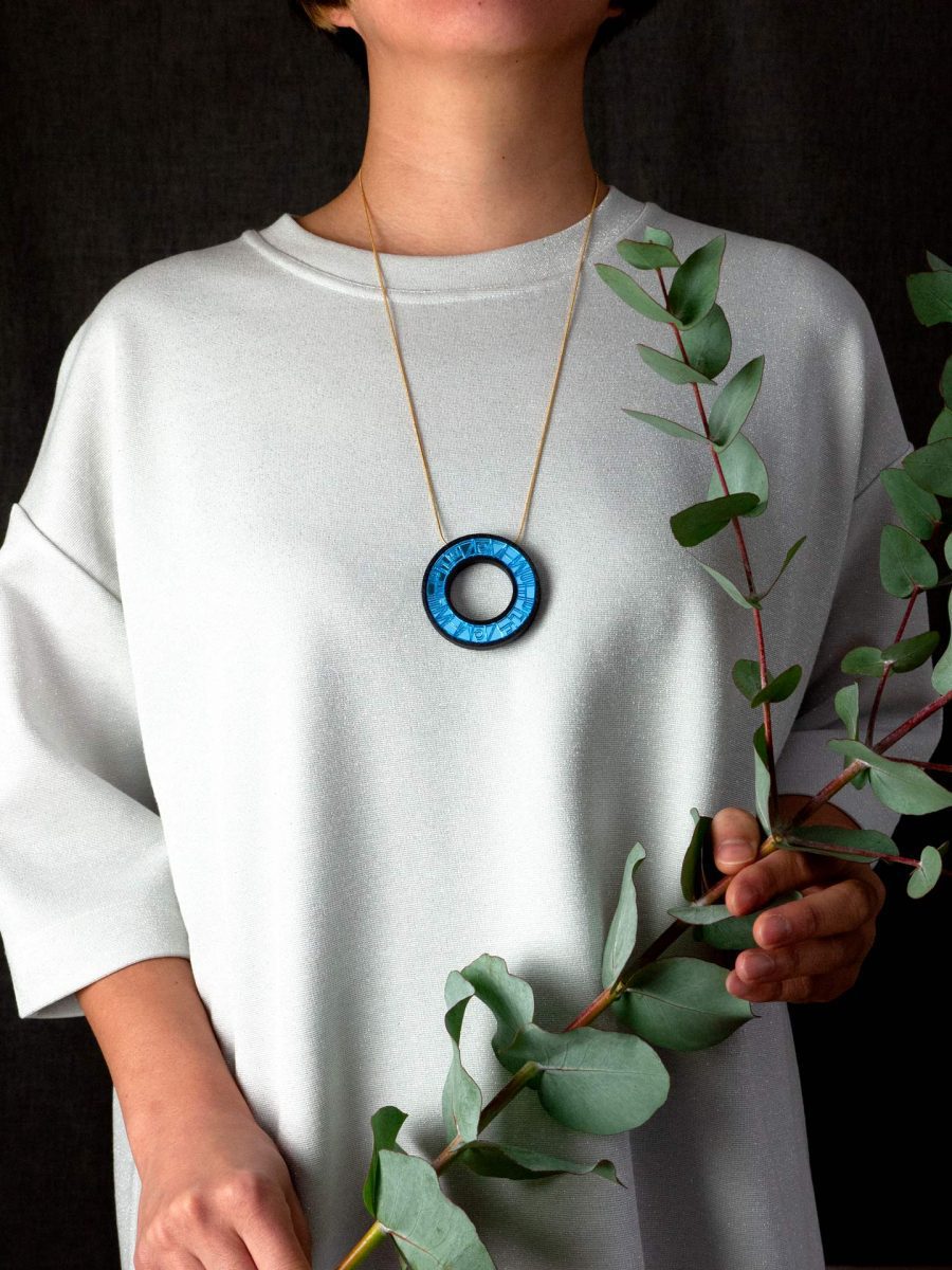 Geometric Perspex Statement Necklace hand made in London, UK.
