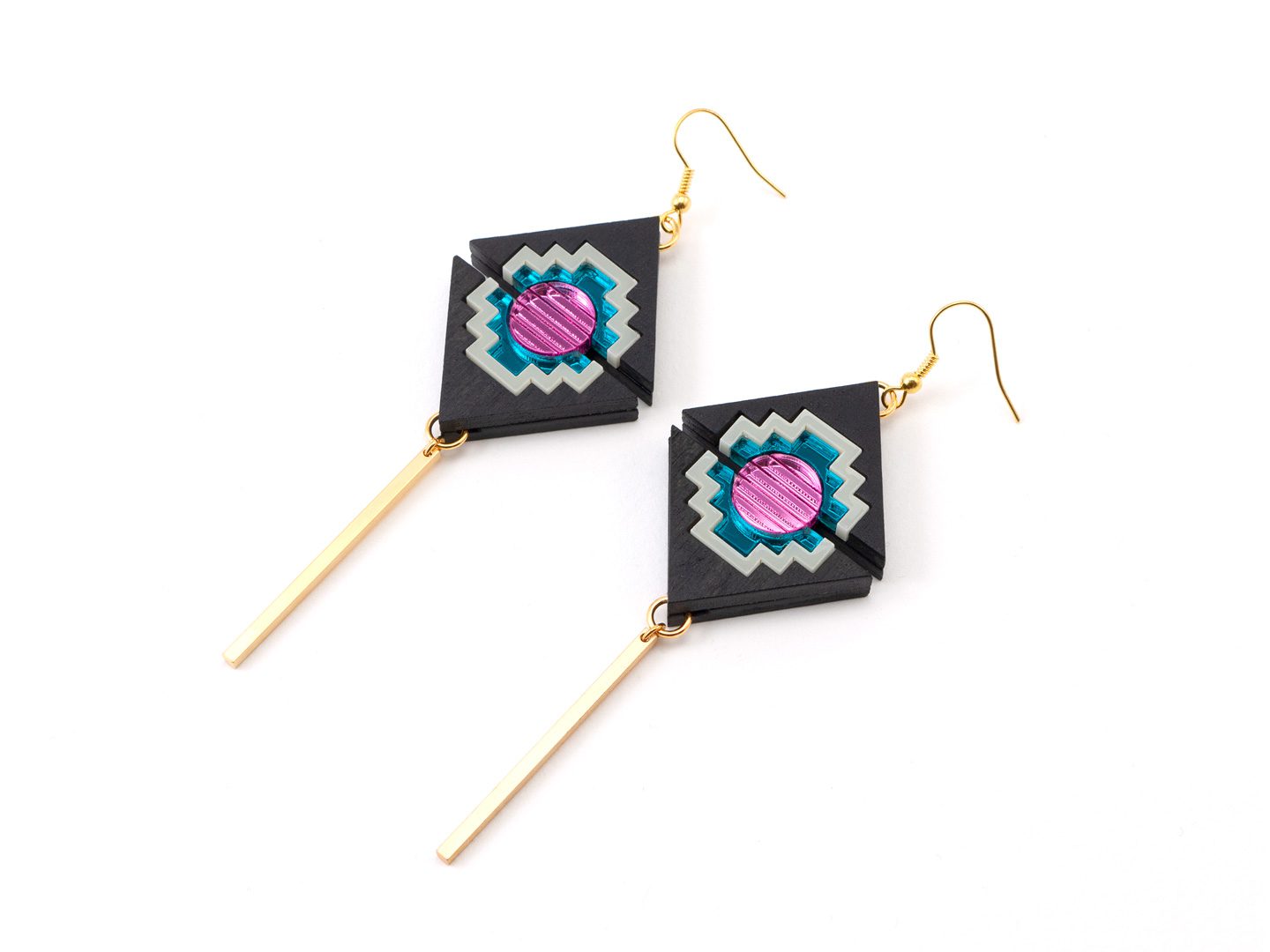 FORM074 KHUFU II Drop Earrings – Various Colours. Statement Mini Earrings hand made in London, UK. Available in a choice of colours