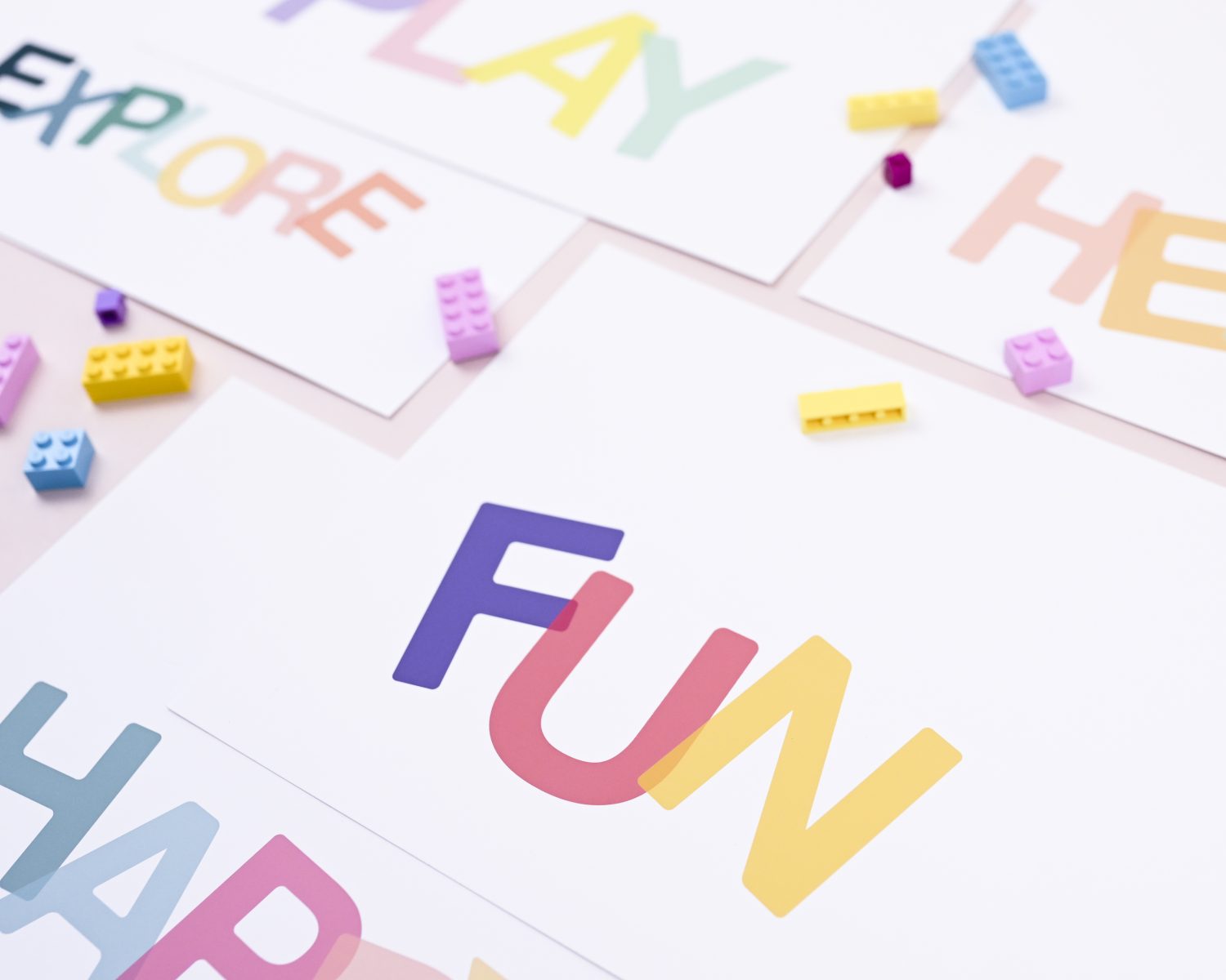 This fun and colourful print looks great in a kids bedroom or as part of a contemporary gallery wall.