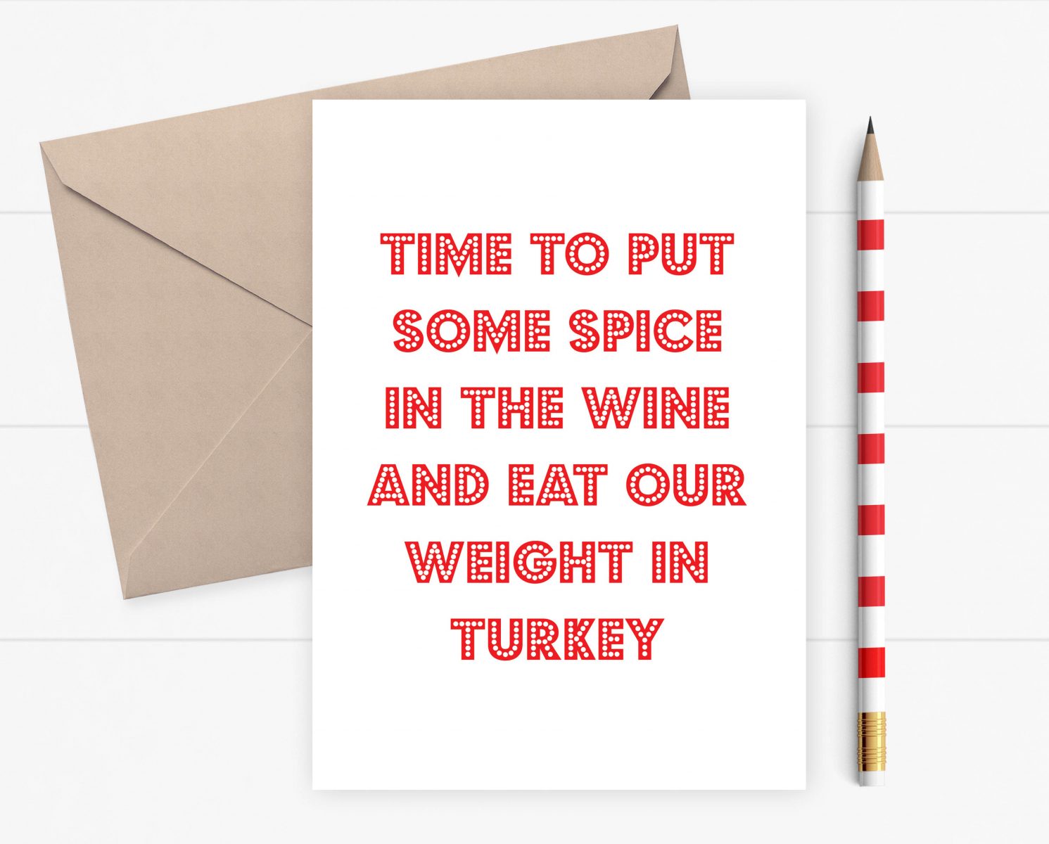 Time to put some spice in the wine and eat our weight in Turkey. A festive card for those who love turkey and wine.