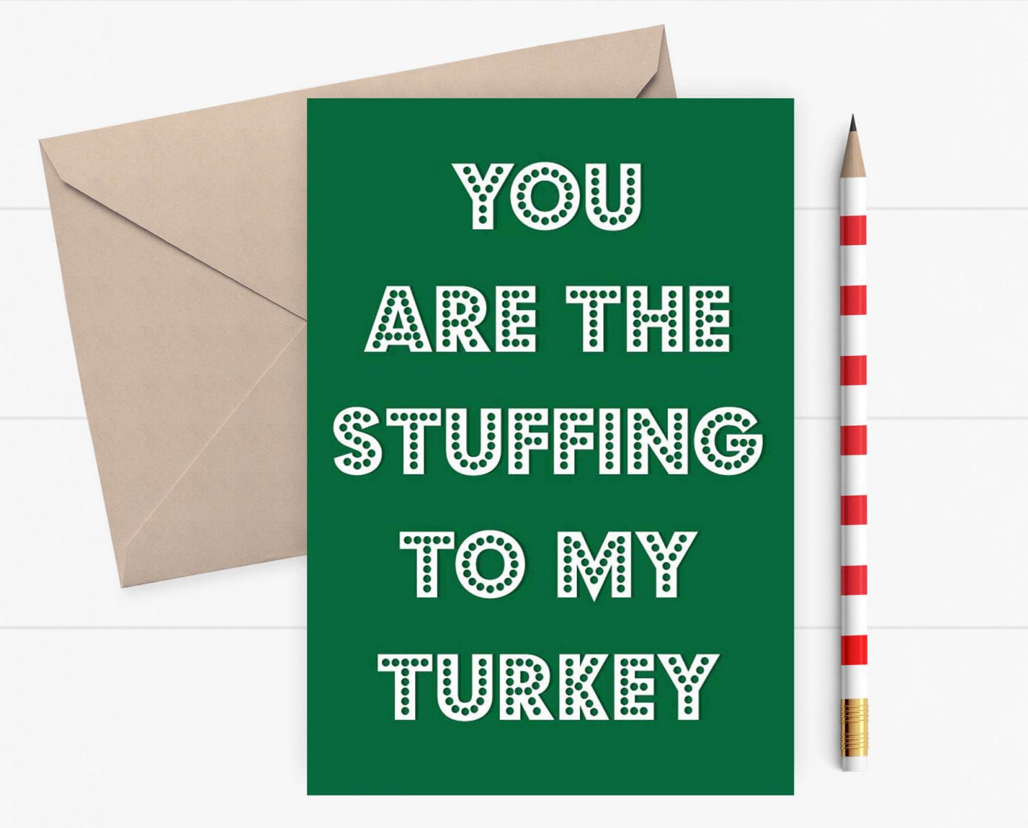 Add a touch of festive humor to your holiday greetings with our “You Are the Stuffing to My Turkey” Christmas card—designed to delight food lovers and bring a smile to anyone who appreciates quirky holiday fun! This playful Christmas card, featuring a bold white-on-green design, makes a memorable impression and is the perfect choice for friends, family, or a special someone who’s the “stuffing to your turkey.”