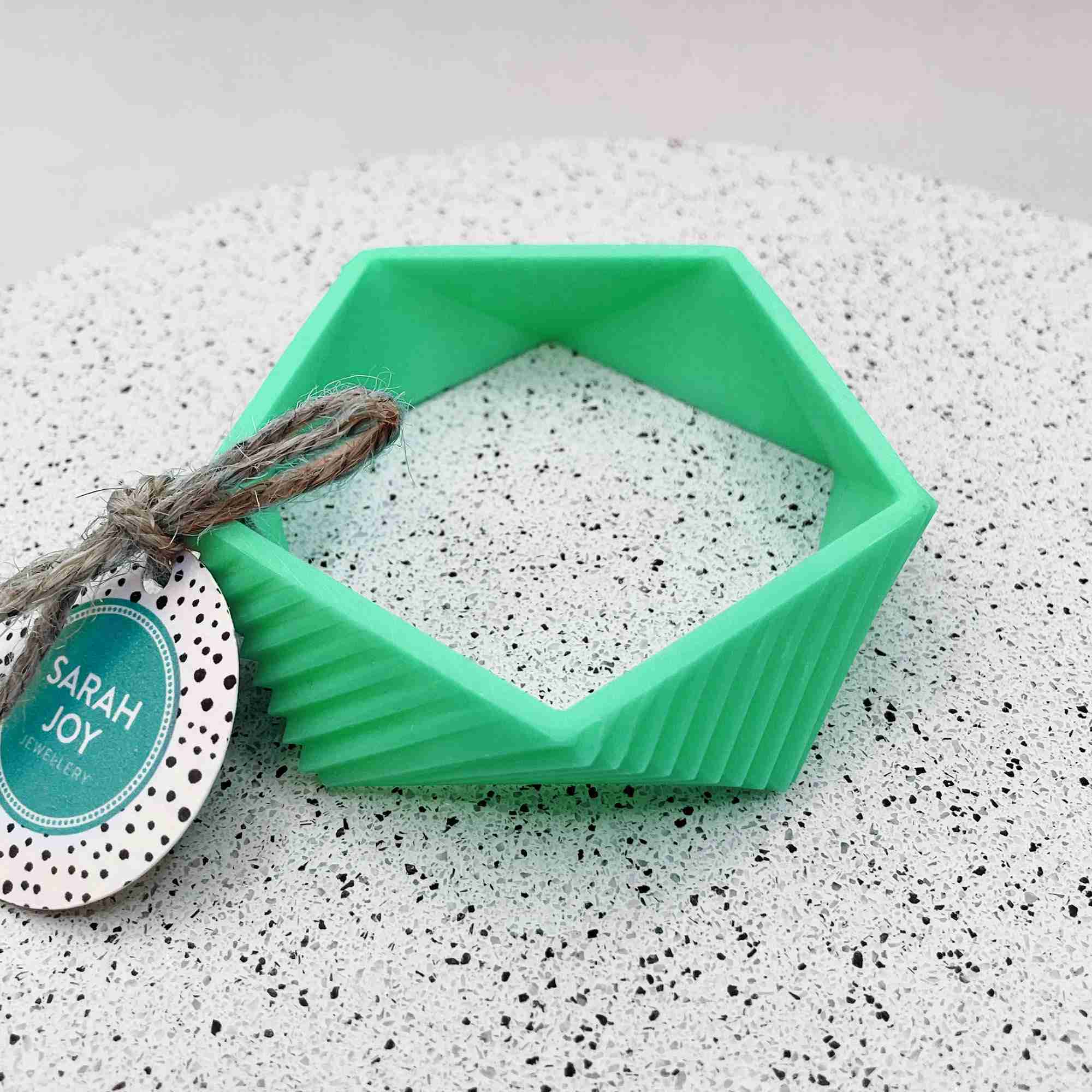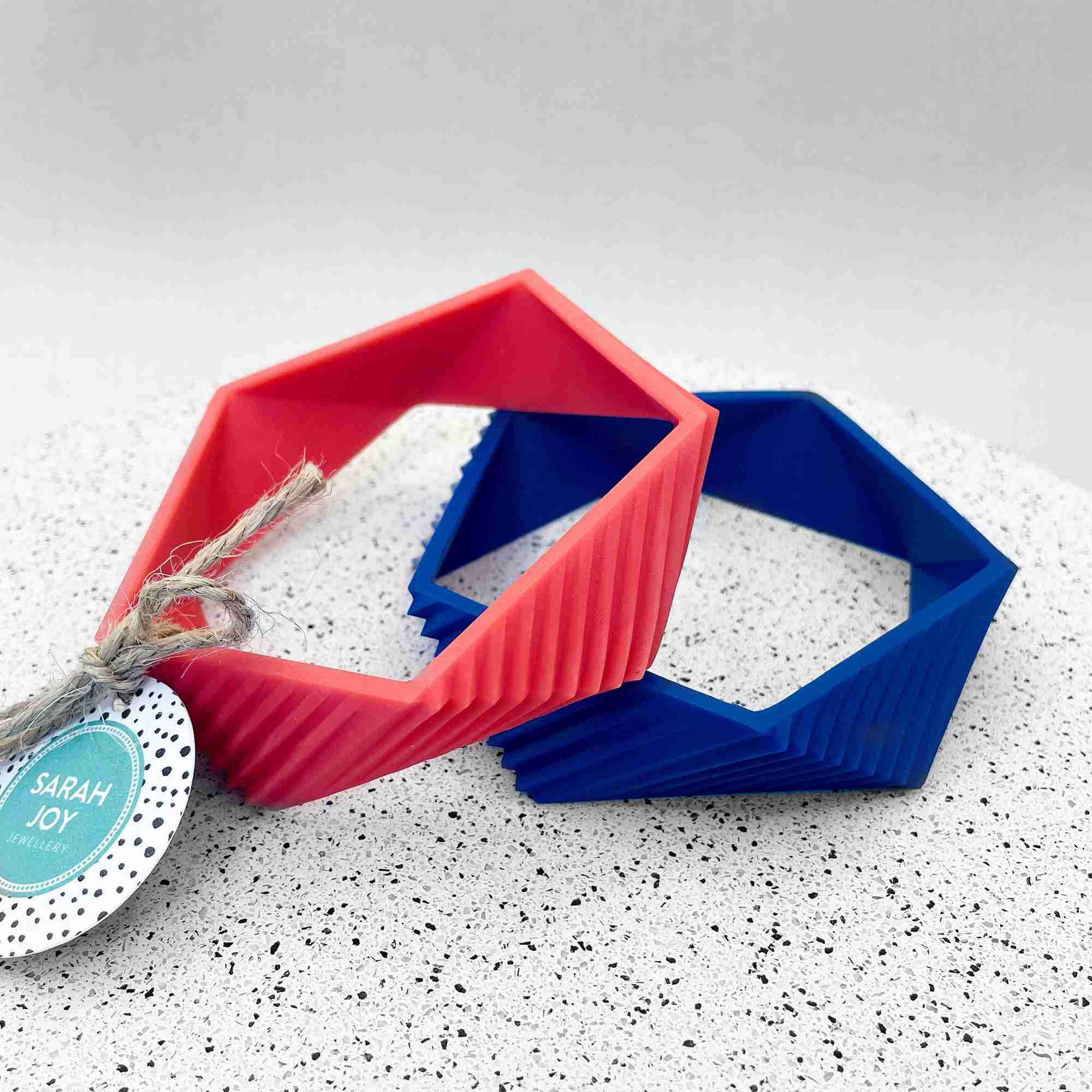 Geo Stripe Bangle. 3D printed, lightweight chunky statement bangle. Available in 3 sizes with a range of vibrant colour options.