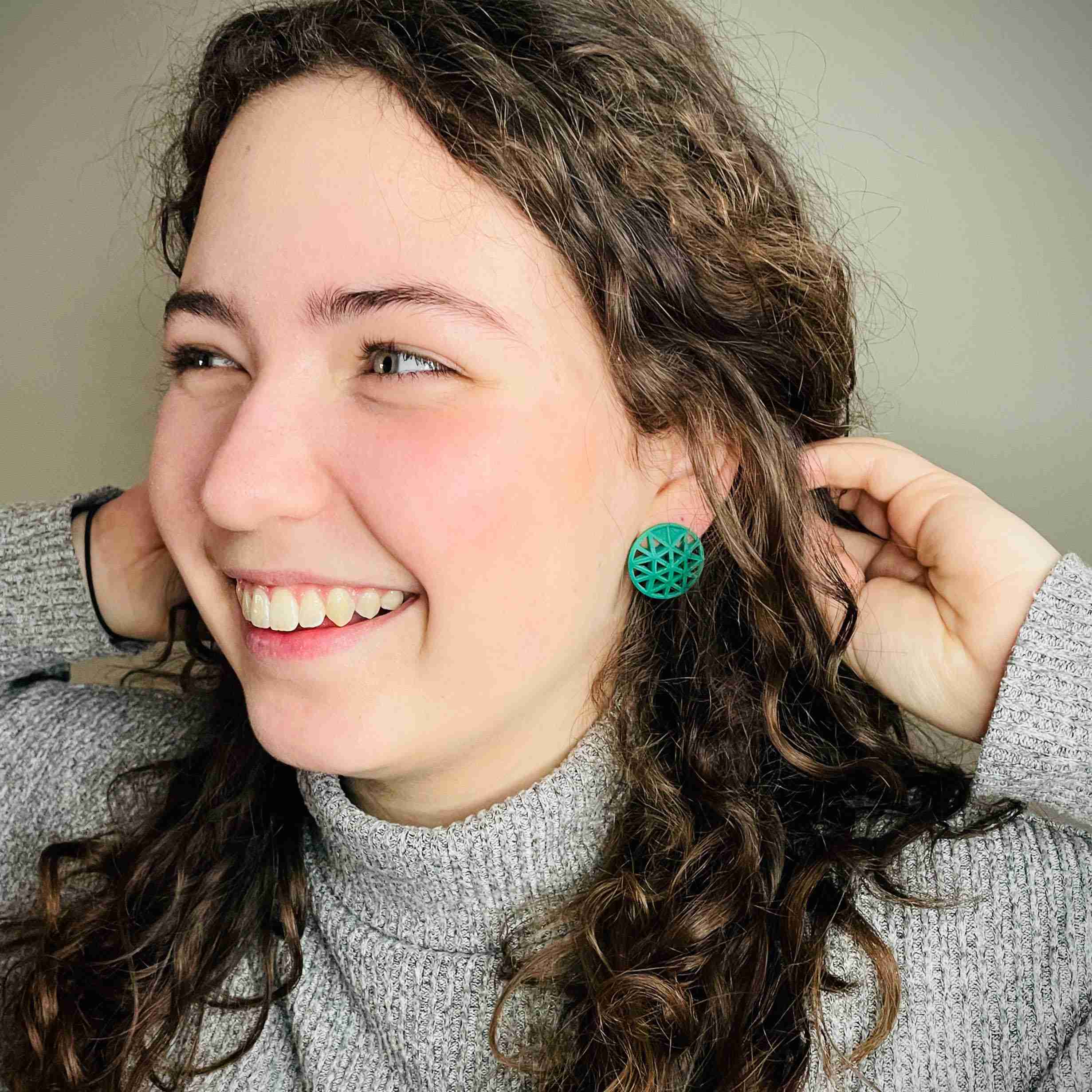 Striking and stylish circular design 3D printed in lightweight resin; statement jewellery that’s easy on the ear.