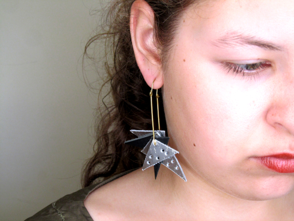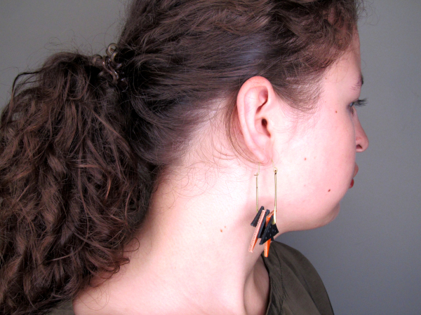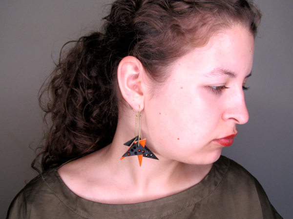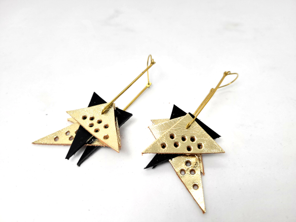 Geometric handmade upcycled Leather Earrings – Black and Orange