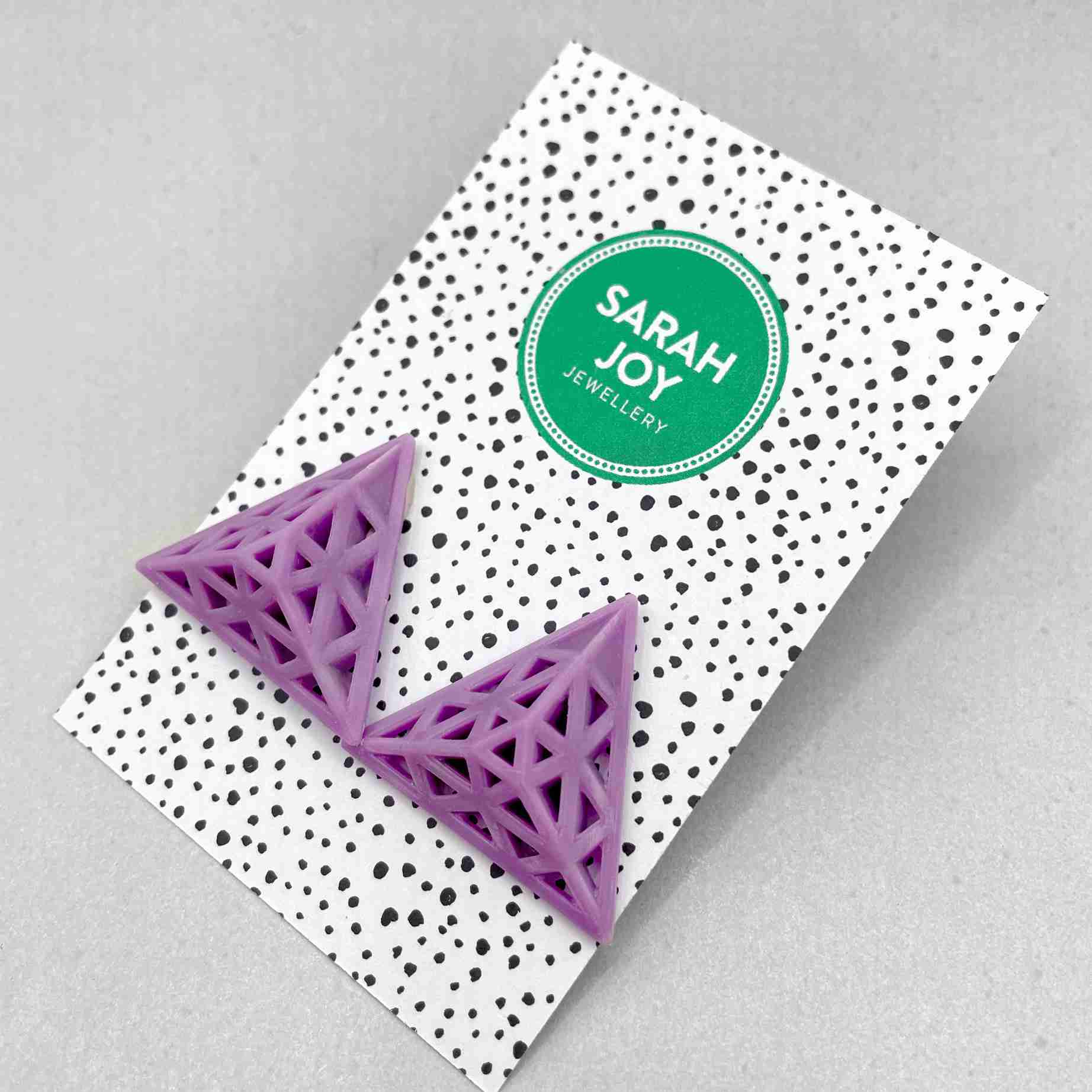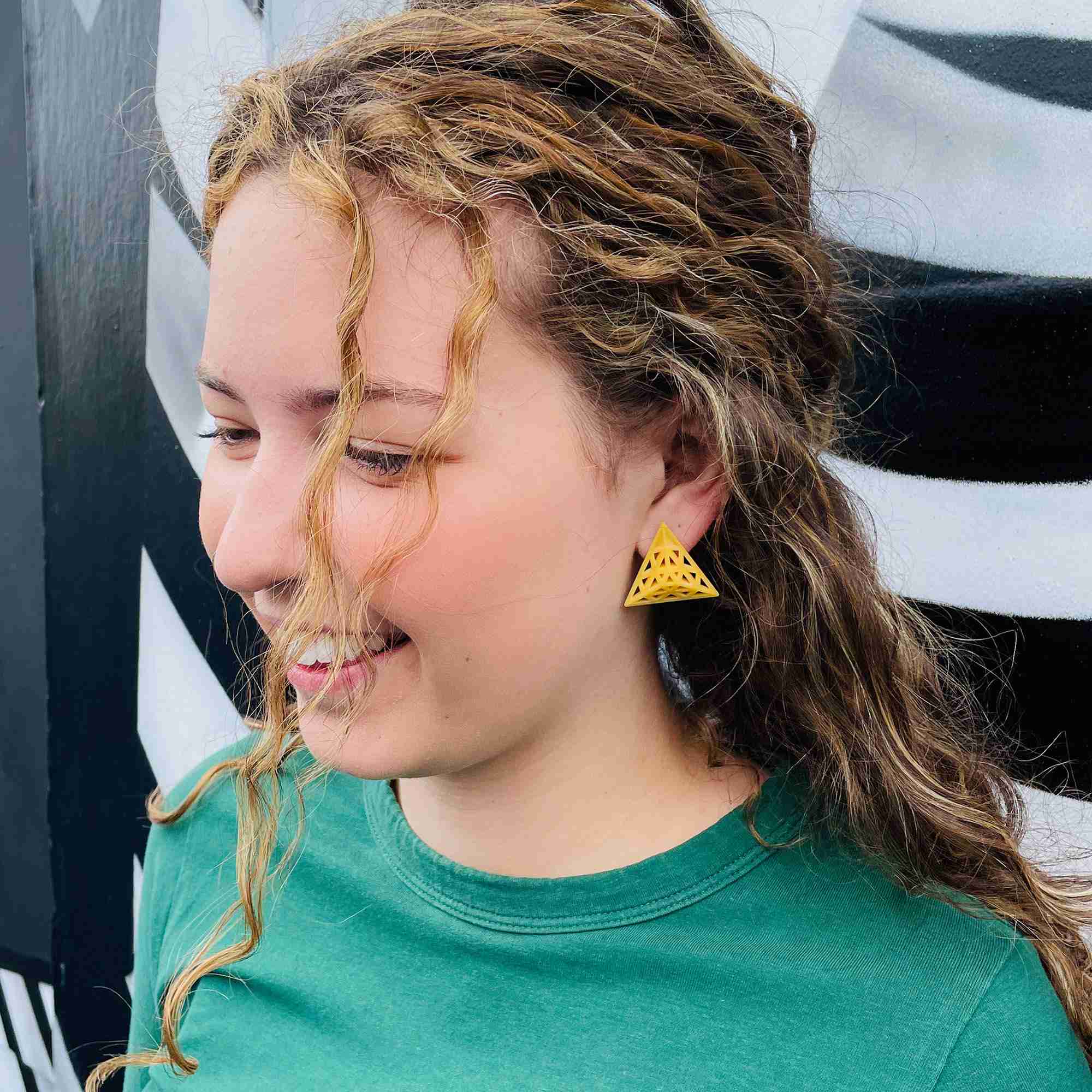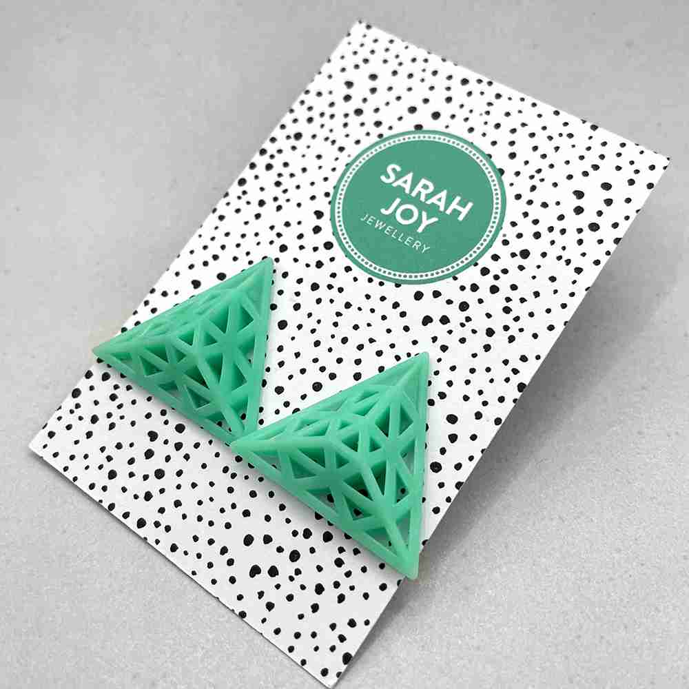 Striking and stylish triangular design 3D printed in lightweight resin; statement jewellery that’s easy on the ear.