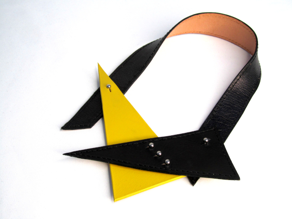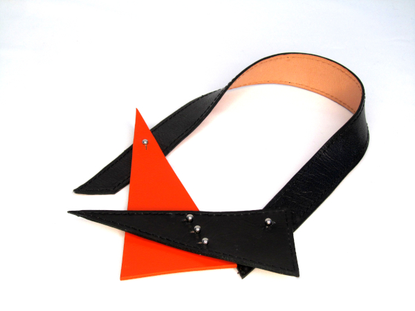 All my leather product are handmade by me in my workshop in Hove in the UK. I design and make every single item from start to finish. Geometric necklace is handmade of moulded vegetable tanned leather hand dyed. Available in black and orange leather