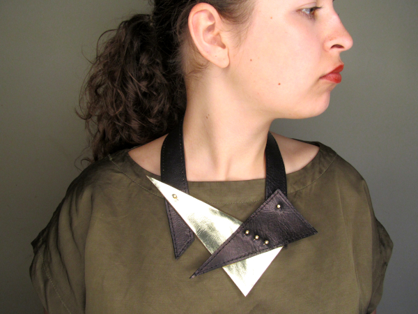 Be the first to review “Geometric Upcycled Leather Bib Necklace”