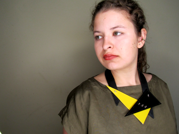 Geometric Upcycled Leather Bib Necklace handmade : Black, Orange, Yellow or Gold Studded Jewellery