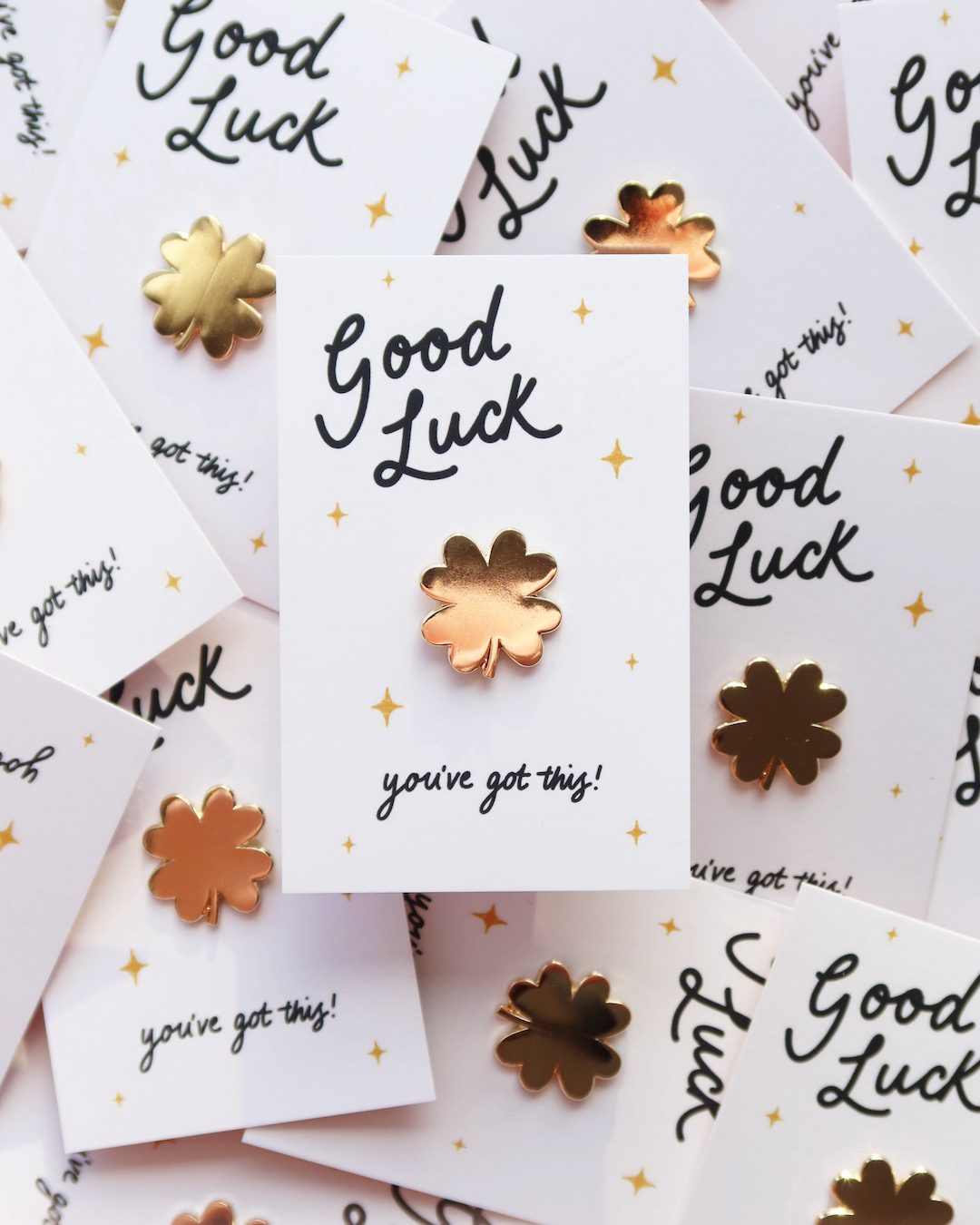 Featuring a sleek gold design, this pin is a symbol of luck and prosperity, making it an ideal gift for anyone starting a new chapter or facing important life events. Crafted from high-quality enamel, it’s a lasting keepsake that radiates positivity.