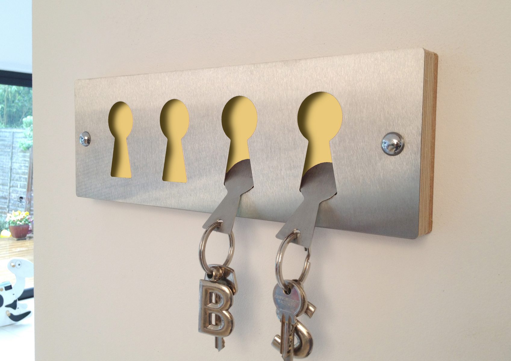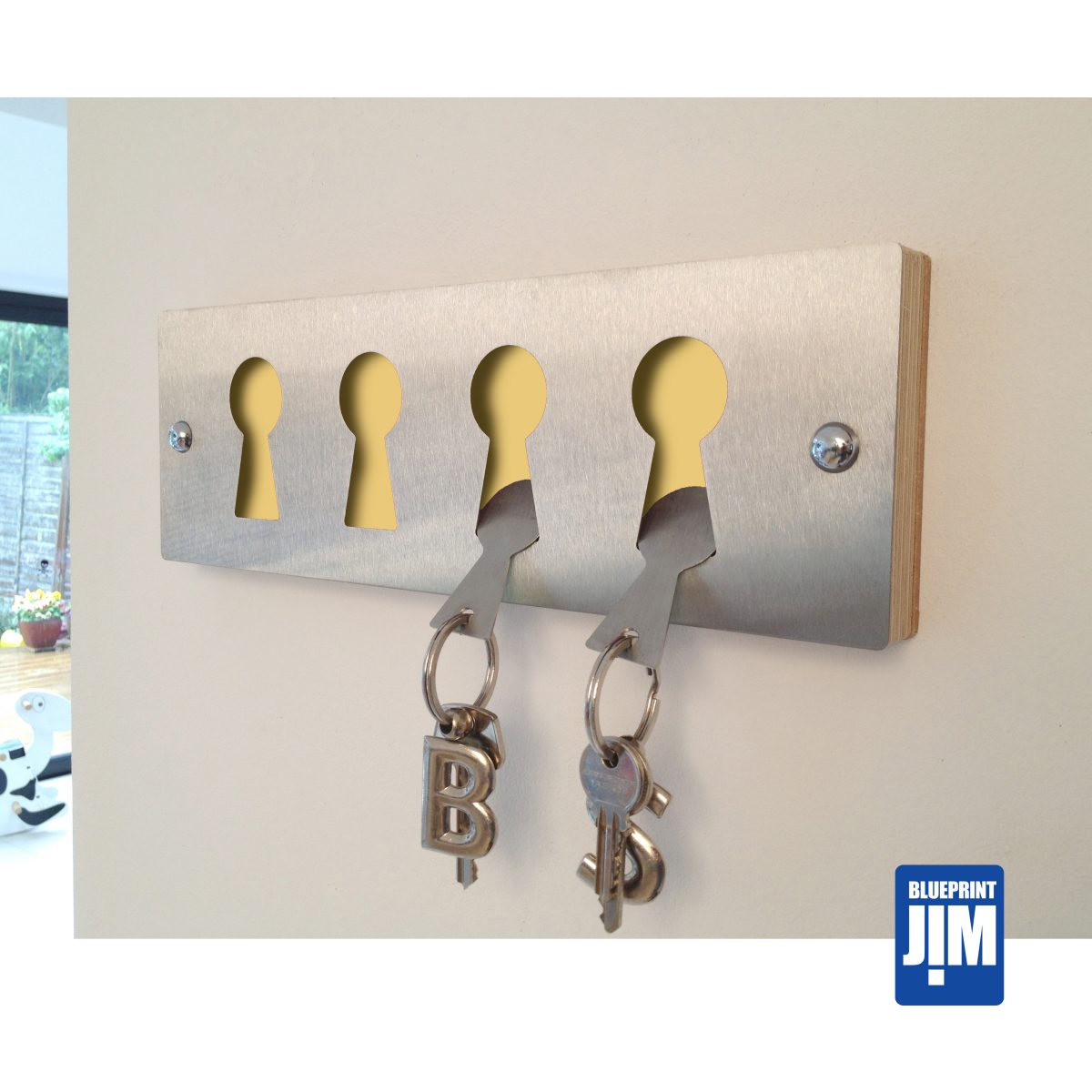 The Gold Stainless Steel key rack comes with 4 key fobs which fit into the empty key holes. A simple design to fit into any surrounding. The Wooden style key fob design can also be used on this as well. Front panel made from 1mm Brushed stainless steel, 18mm birch faced ply middle and the back plate 3mm MDF. 300mm x 100mm x 22mm Mirror screws and rawl plugs included.