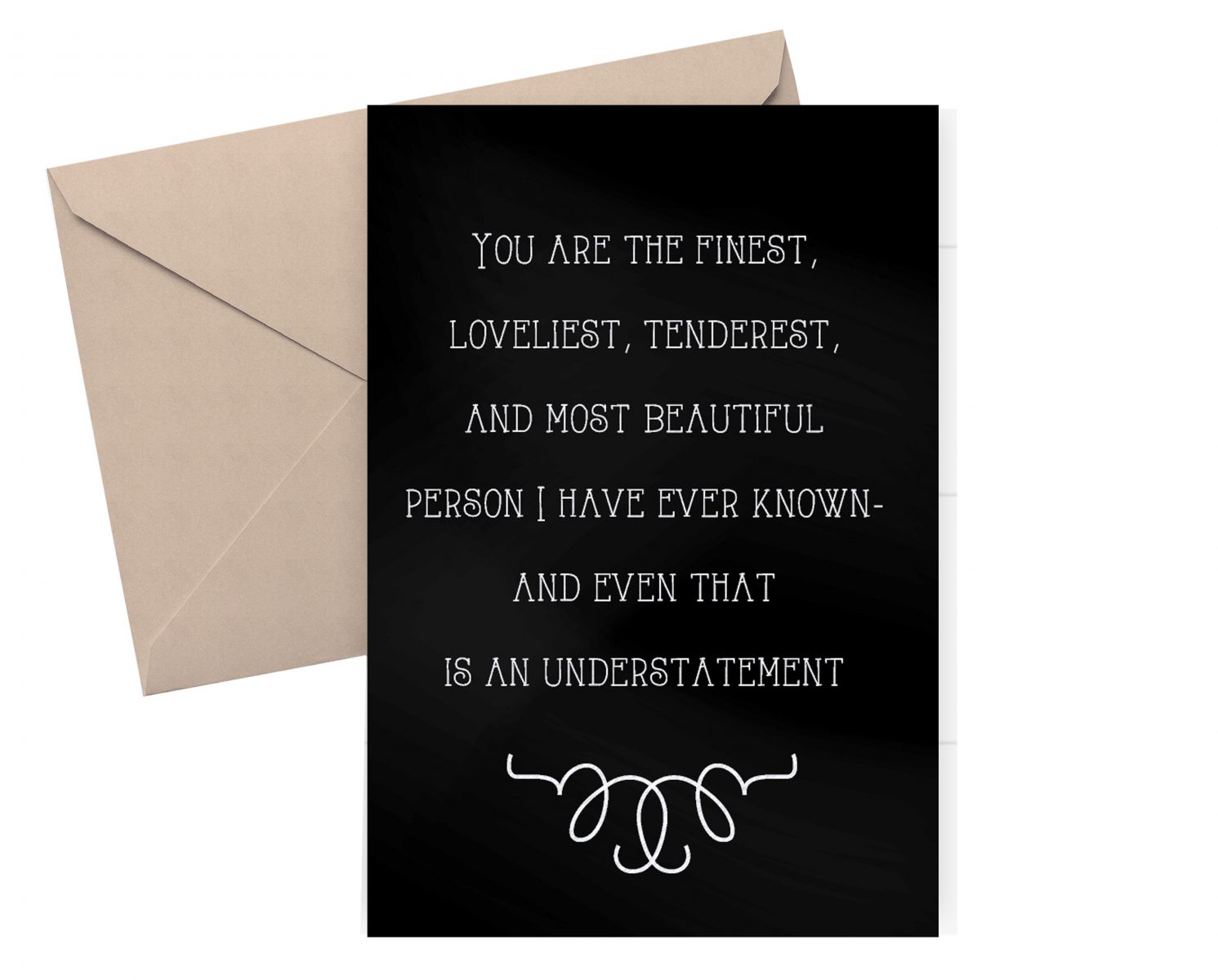 Professionally printed on 300gsm matte card stock with a blank interior allowing ample room to write your own message to your loved one. It comes sealed in a cello bag with an accompanying brown Kraft recycled envelope.
