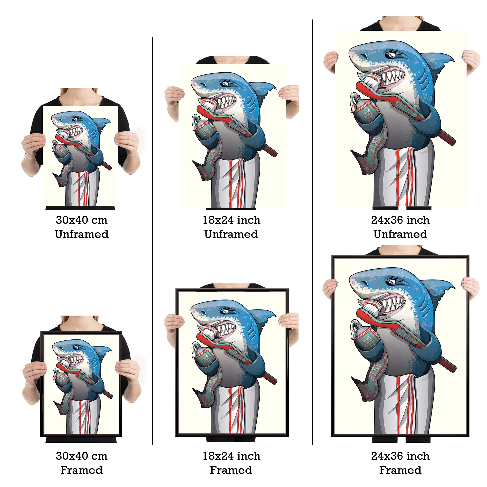 The “Great White Shark Cleaning Teeth” Art Print is more than just decoration; it’s a playful piece that can brighten your bathroom and elevate your decor game!