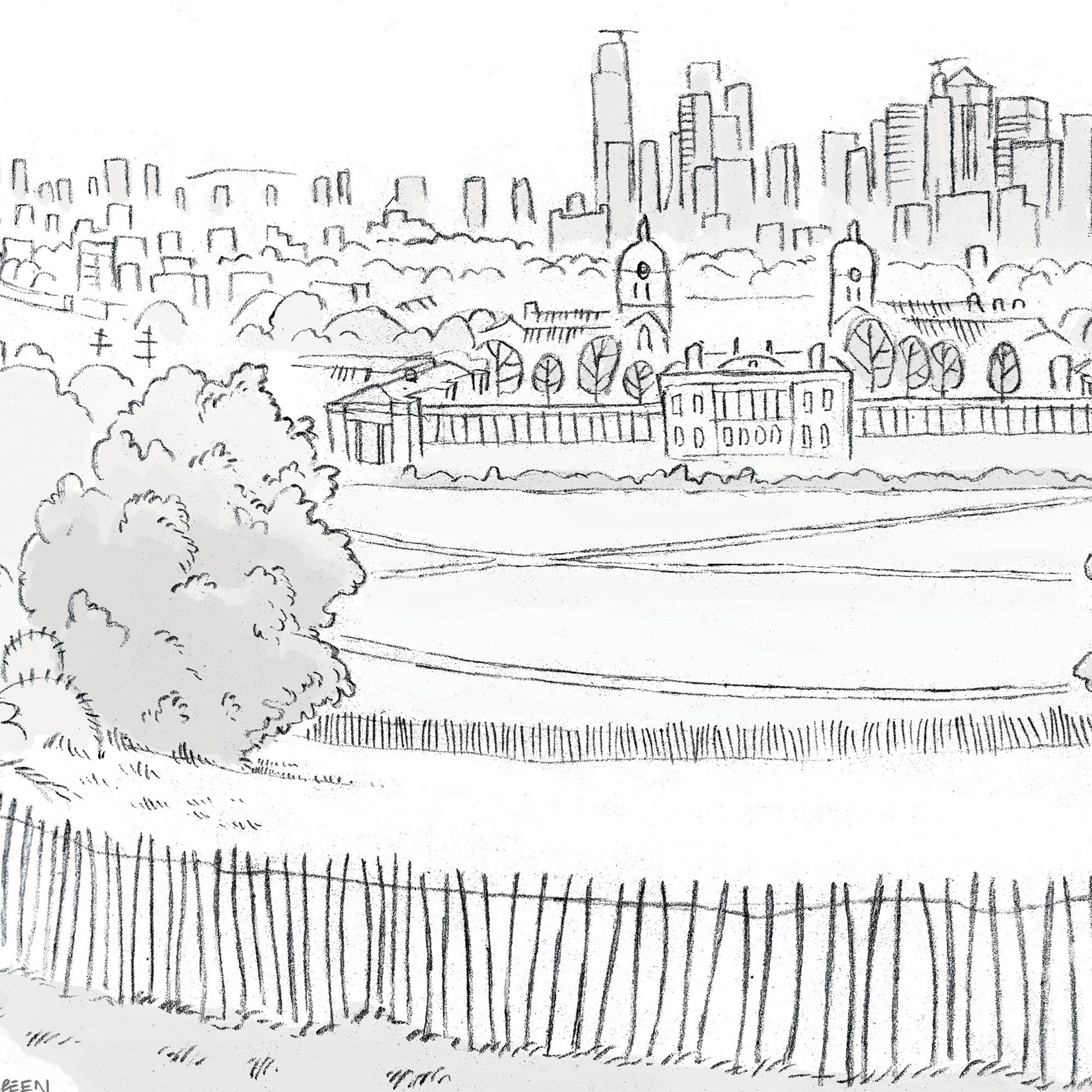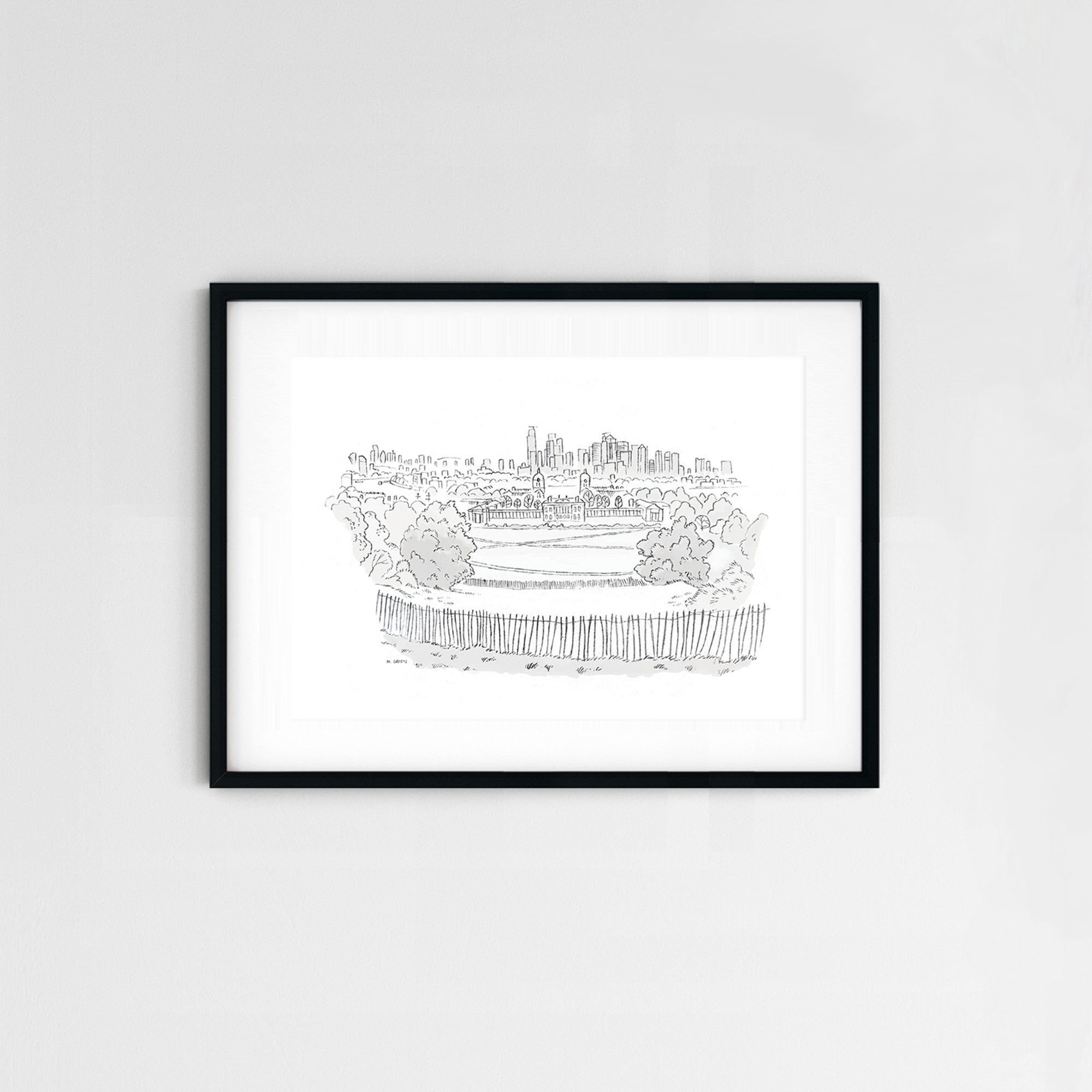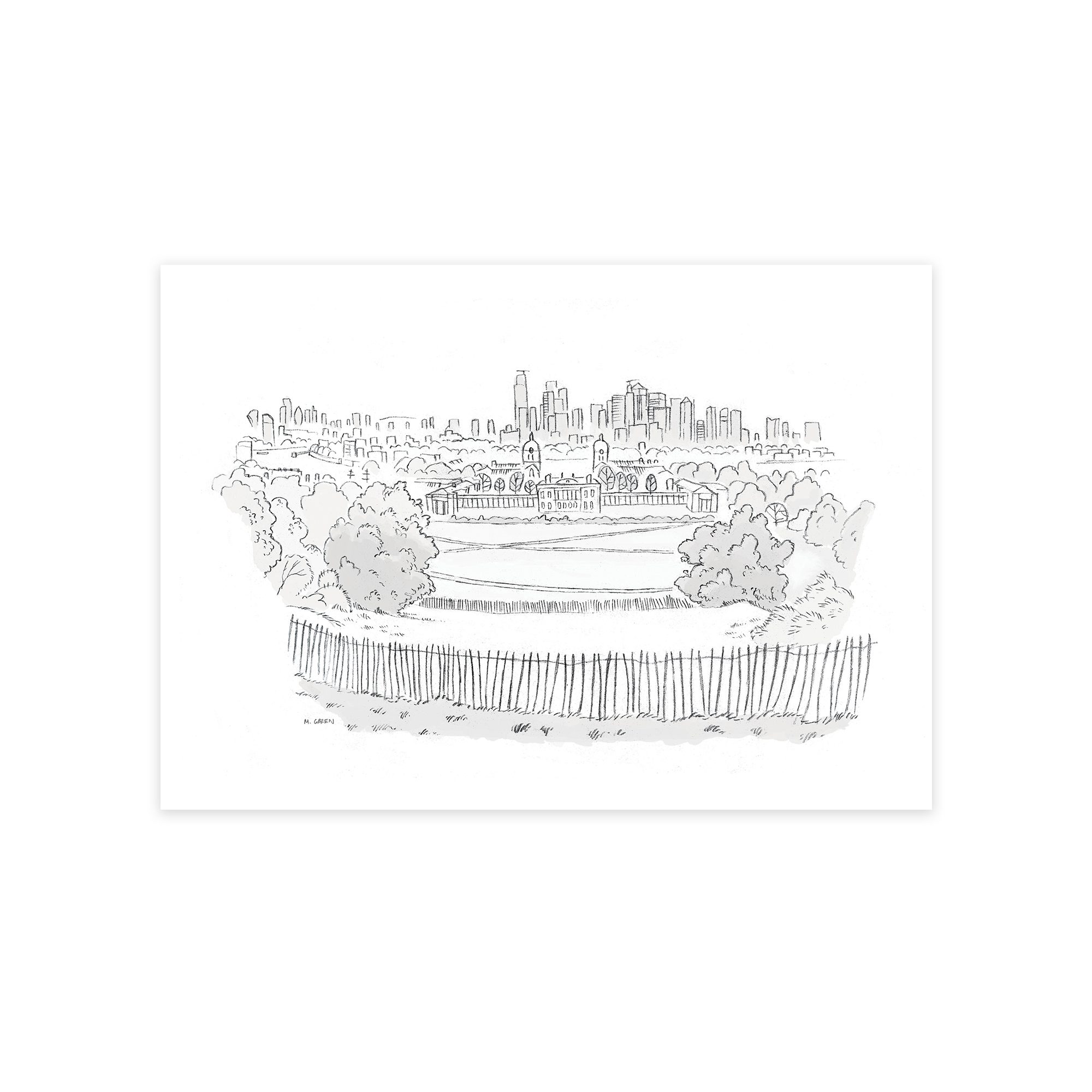 A signed print of my sketch of the view from the top of London’s Greenwich park. This could be one of London’s best views you can find while keeping your feet on the ground. You can see Canary Wharf across the Thames and all the way to the city on the left with Tower Bridge and the Gherkin.