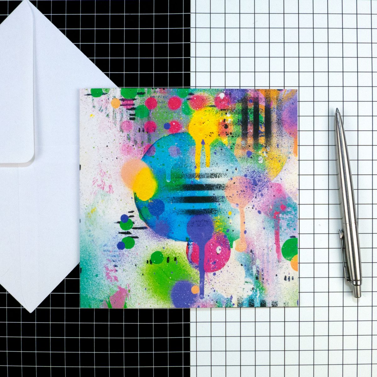 This design is called ‘Fairground attraction’ and comes from a series of expressive abstract paintings.