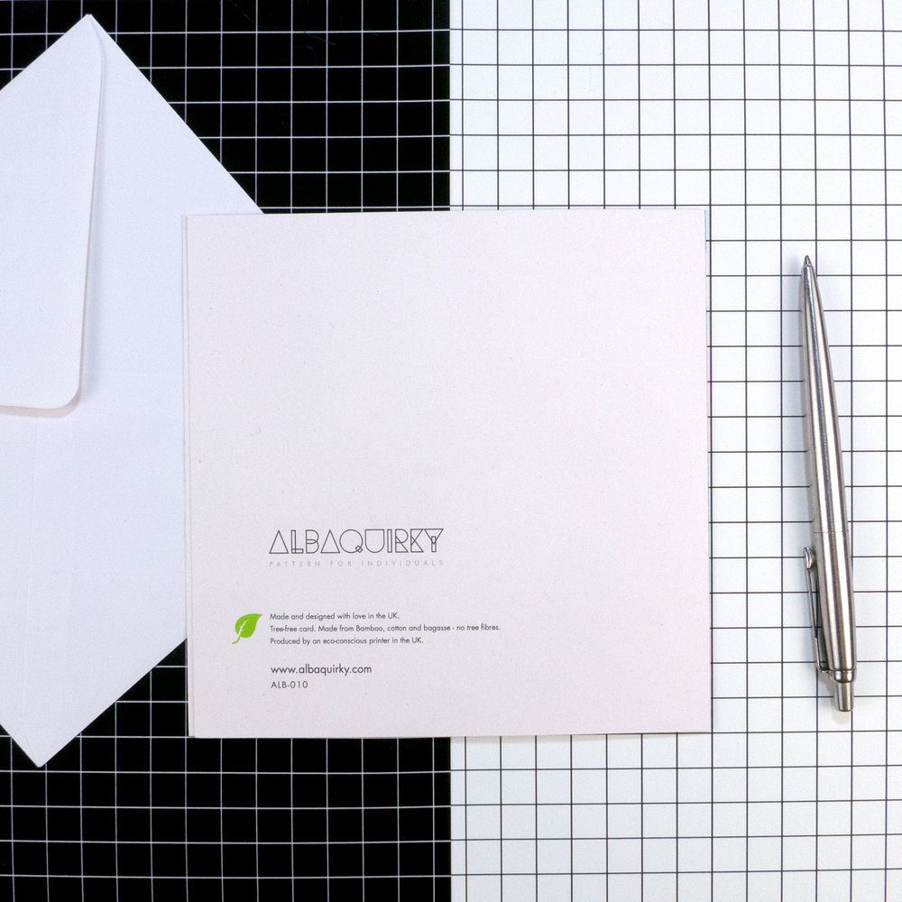 Made from: Made in Britain from 300gsm tree-free card. Produced by an eco-conscious printer in the U.K. Tree-free card is made from a mix of bamboo, cotton and bagasse – no tree fibres.