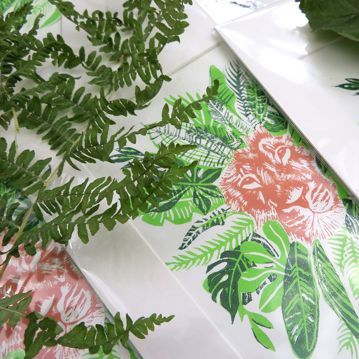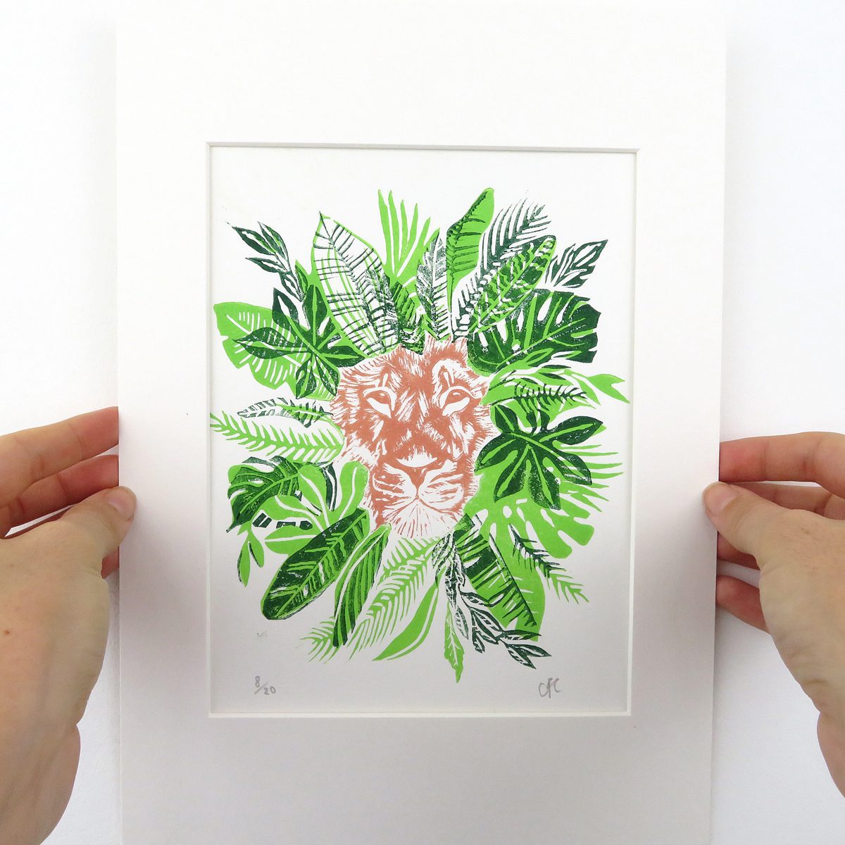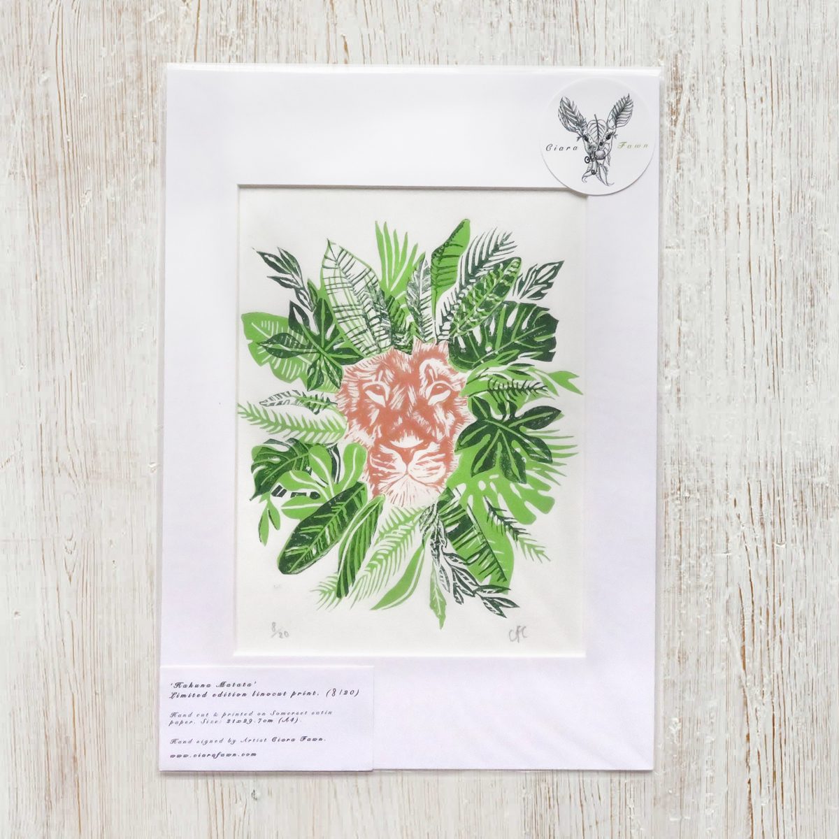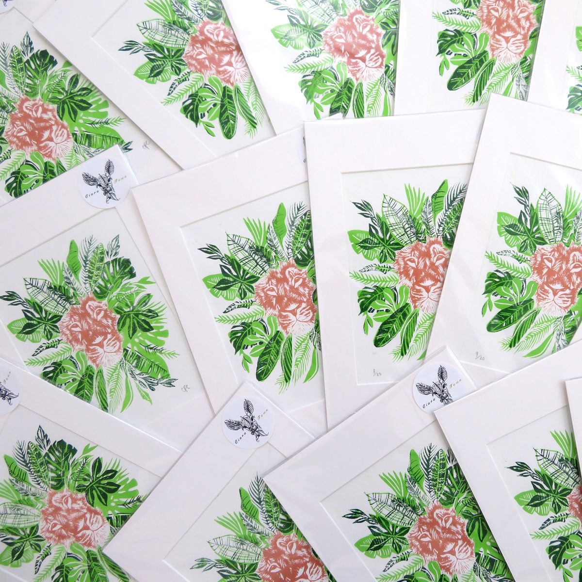 Due to the nature of lino printing, each print has its own unique ‘fingerprint’ so to speak, with areas of differing print saturation & its own quirks.