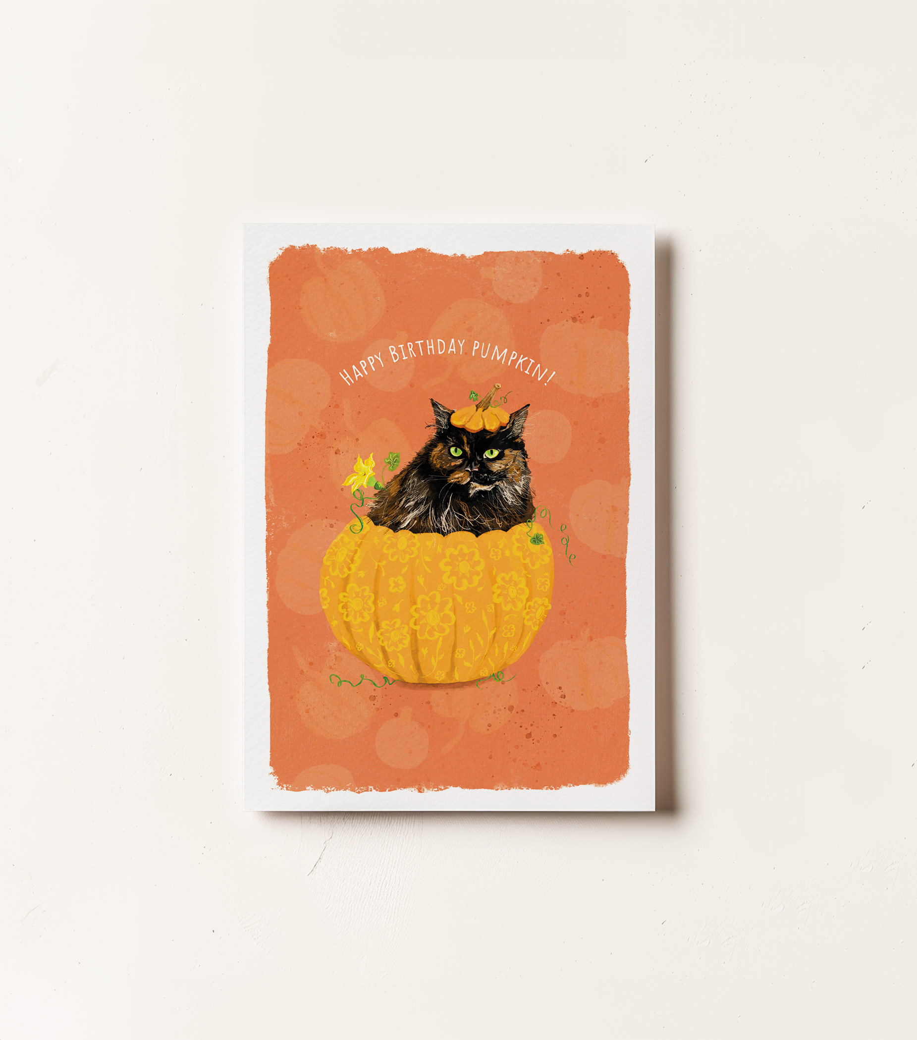 Happy Birthday Pumpkin Card – Perfect for Cat Lovers