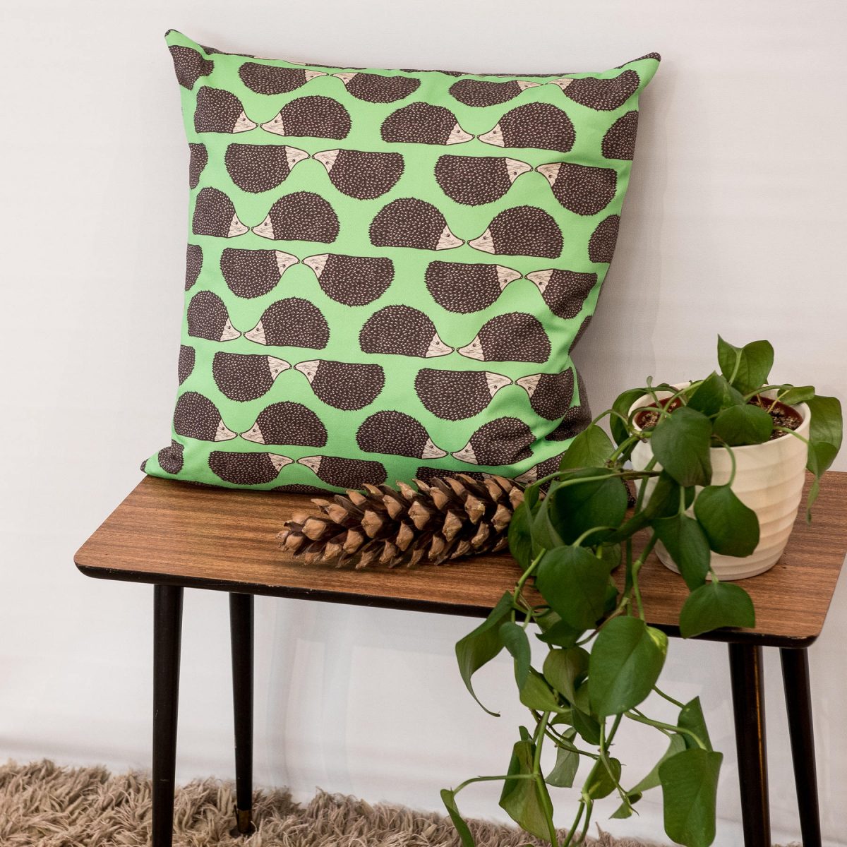 Hedgehog Print Cushion – animal print cushion – hedgehog design – kids cushion – throw pillow – scatter cushion – animal homeware – fun – lino print – patterned cushion – homeware