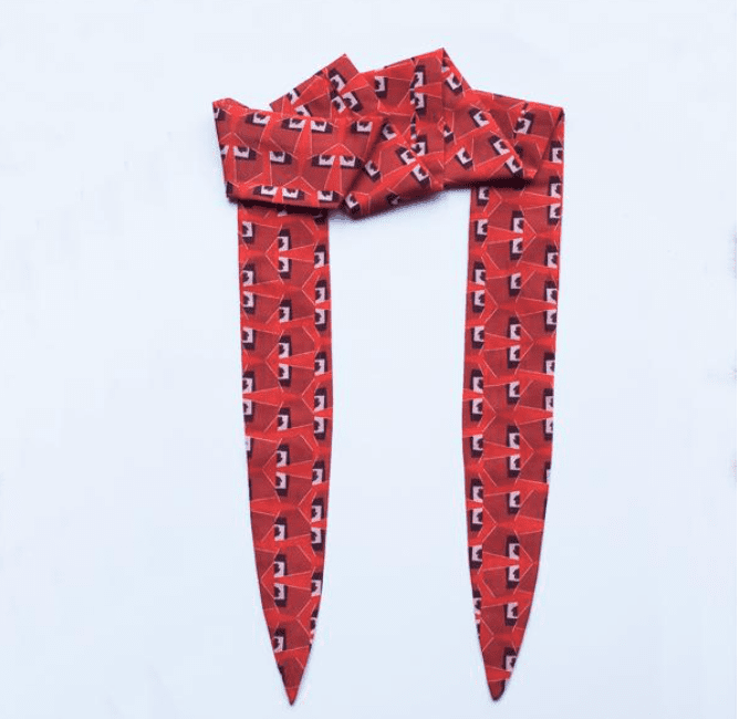 A chic satin crepe scarf: This beautiful scarf can be used many ways – it adds a hint of sophistication to an outfit when worn around the neck. A chic element of unique style when worn as a belt or bow on trousers/jeans and tied around a bag. And a hipster fun vibe around the wrist or in the hair.
