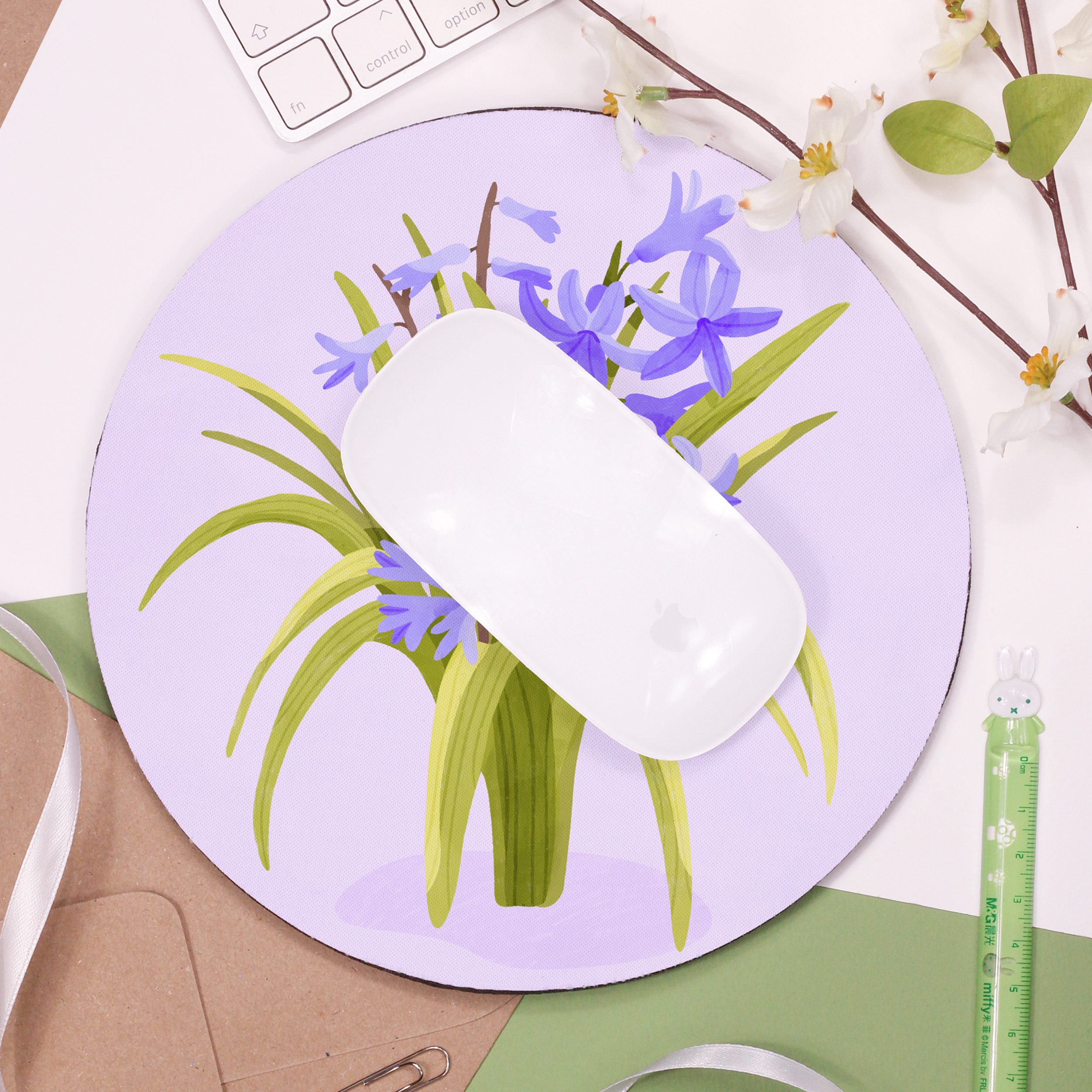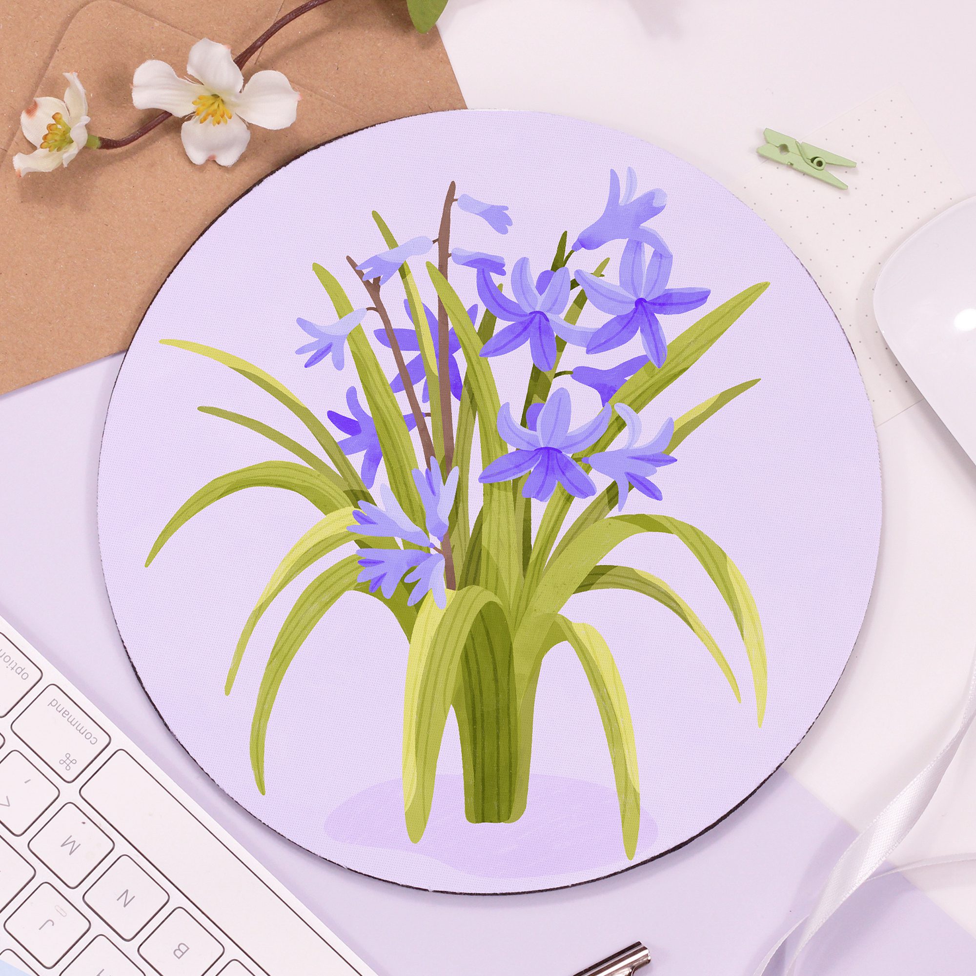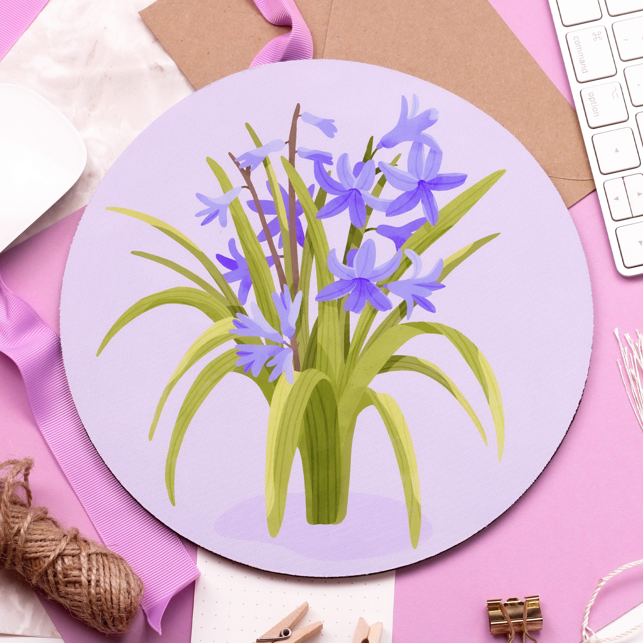 Add a colourful touch to your desk space with this beautiful ‘Hyacinth’ Mouse Pad!