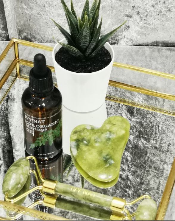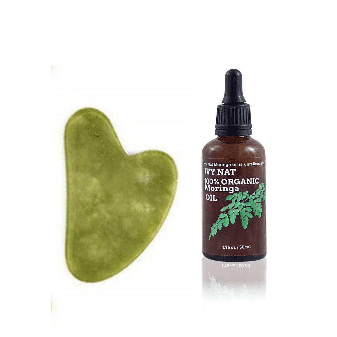 Revive and enhance your skincare ritual with Ivy Nat Jade Gua Sha ancient beauty therapy massage tool as a natural way to achieve skin health and a radiant, youthful complexion.