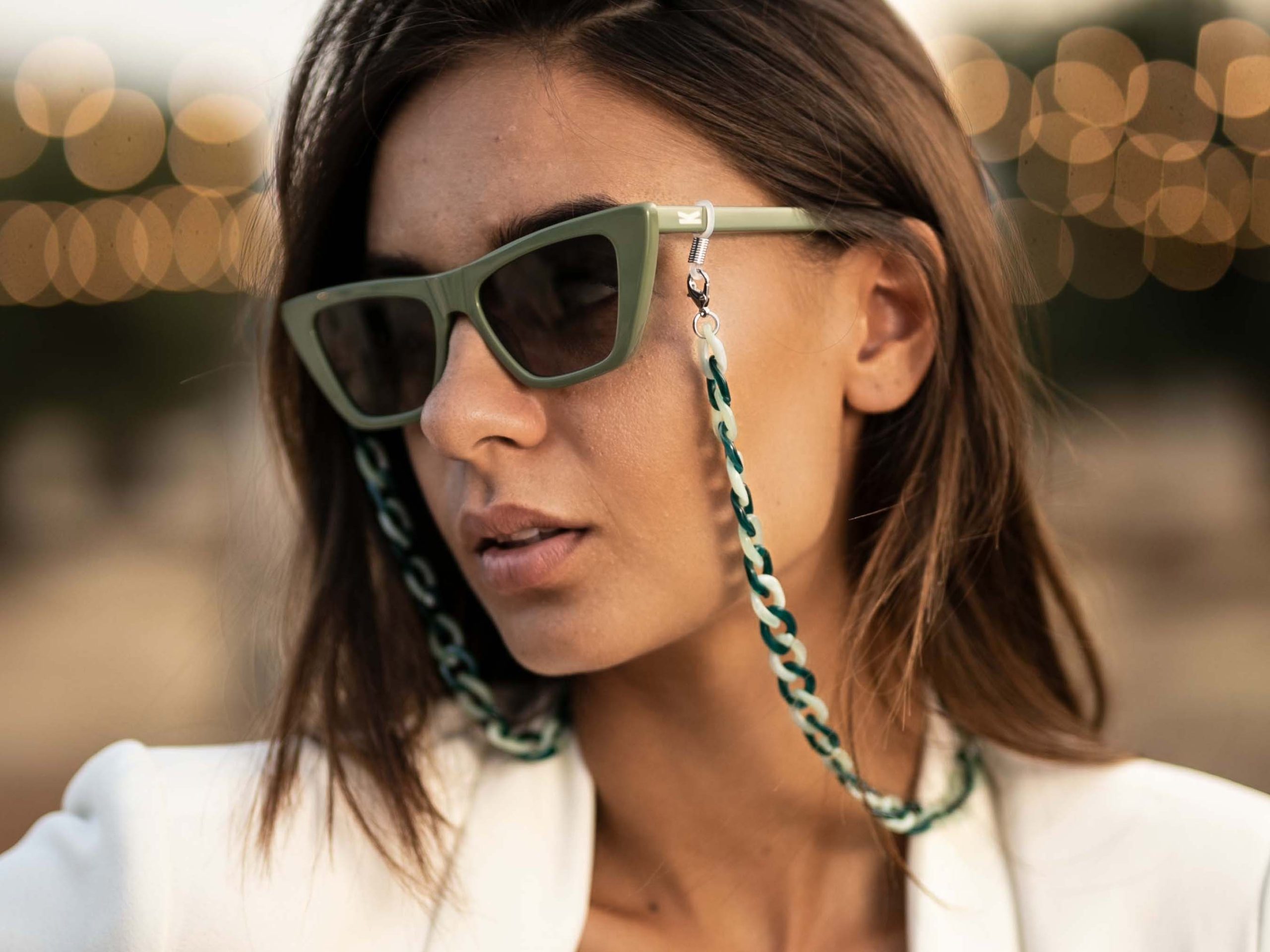 Add a touch of glamour to any pair of glasses with these chunky acrylic glasses chain, thanks to the added benefit of its necklace – like look.
