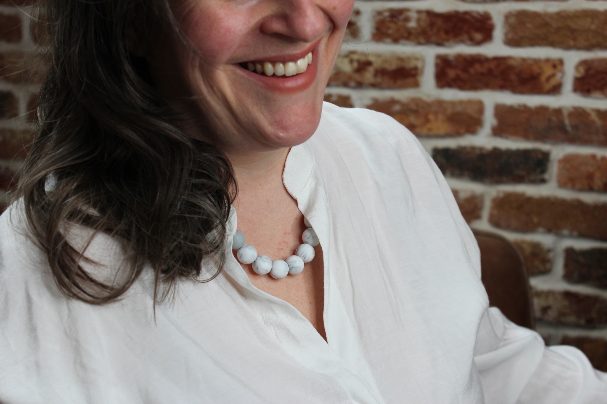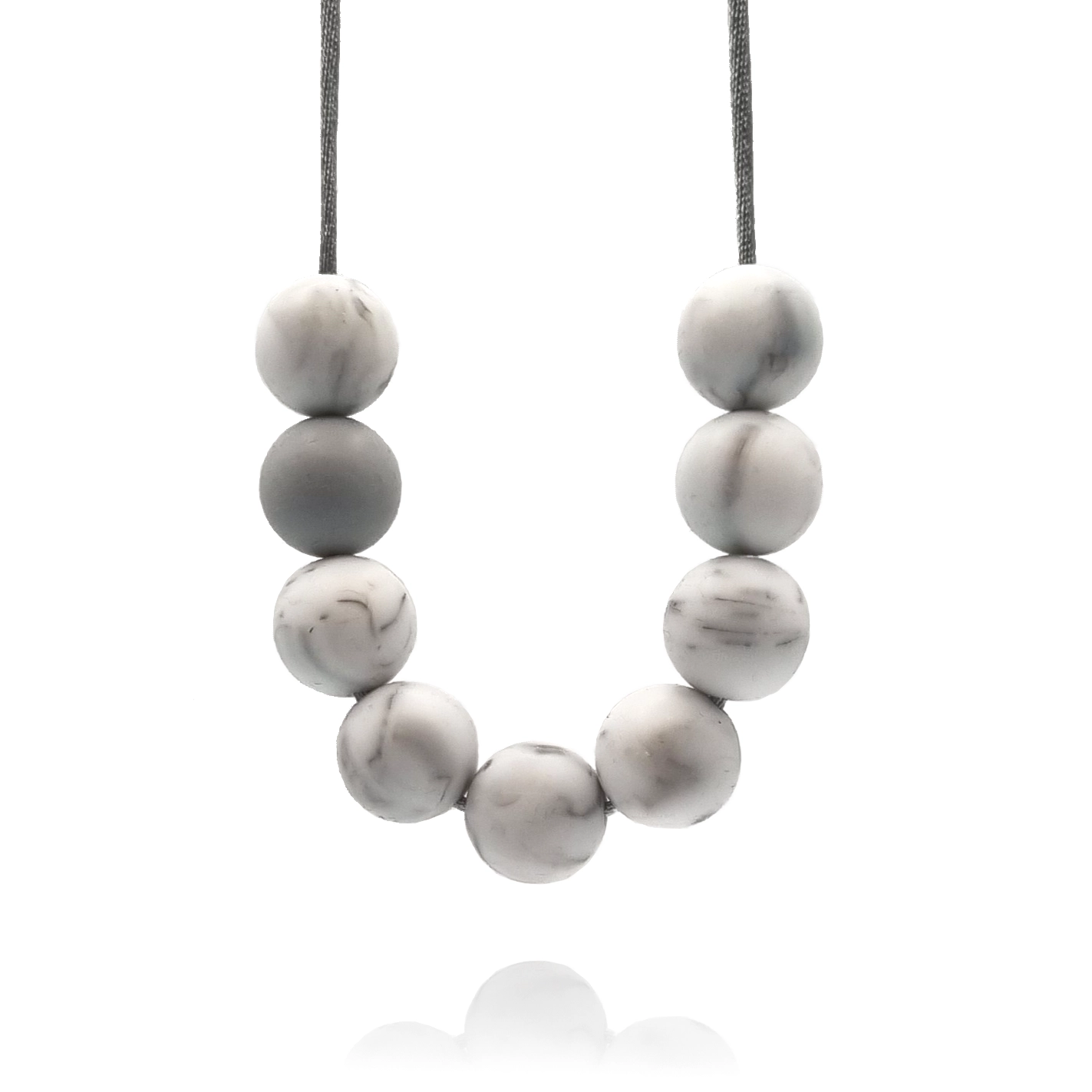 Each necklace is handmade to order, so just add a note if you want a different length than the standard 75cm (which is chest-length for most). The photos included show the necklace at a shorter, 52cm, length. There’s also a customisation option to have a ridged grey bead instead of a smooth one (as shown in close-up).