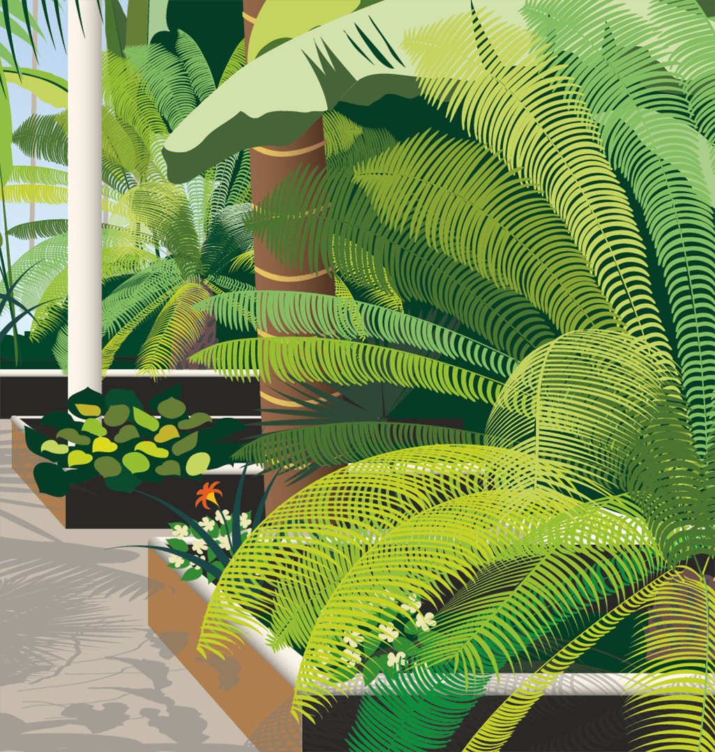 A living laboratory: The Palm House recreates a rainforest climate, a living laboratory supporting a diversity of plants from the tropical regions of the world, all under one roof.